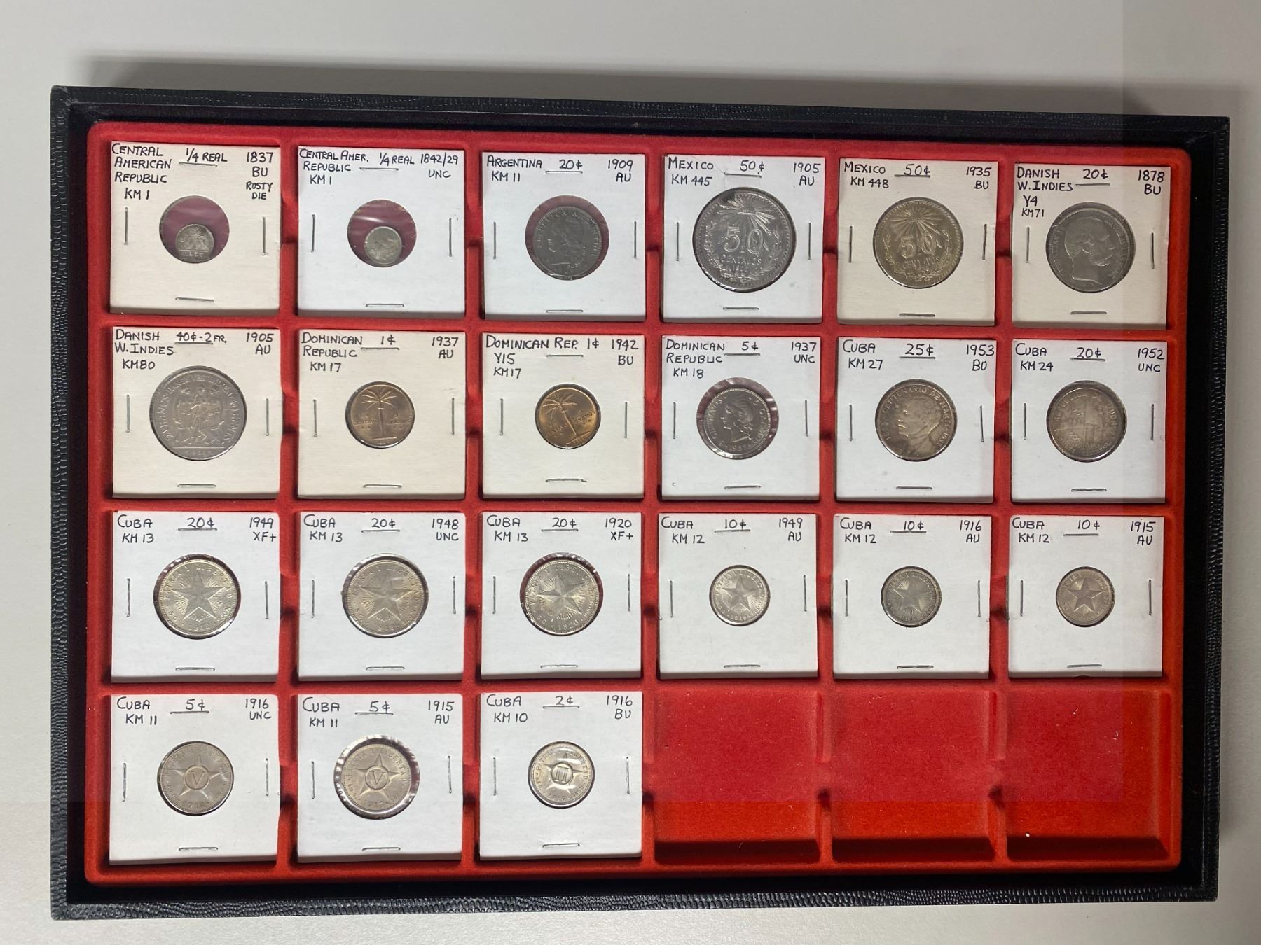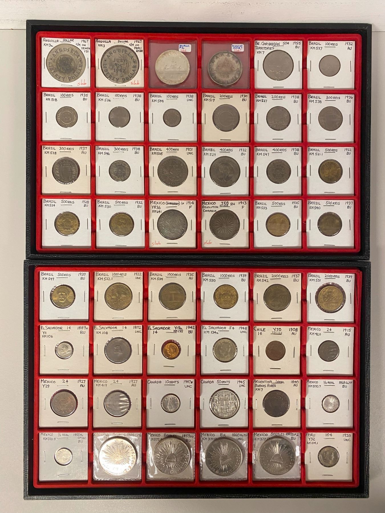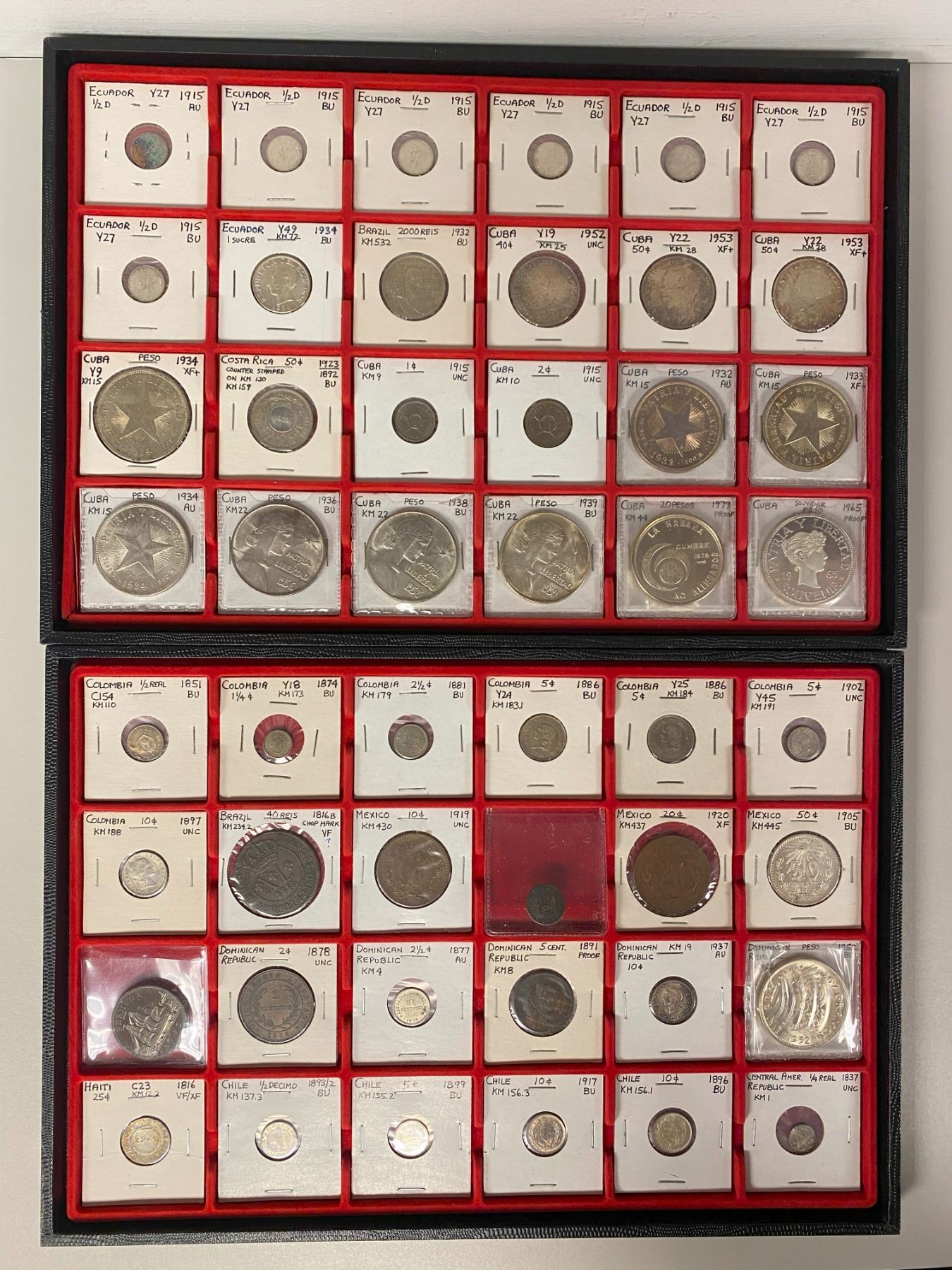 LATIN AMERICA: LOT of 117 coins, diverse group of coins from Anguilla, Canada, British Caribbean Territories, Brazil, Mexico,El Salvador, Chile, Argentina, Peru, Ecuador, Cuba, Costa Rica, Colombia, Bermuda, Dominican Republic, Haiti, Central American Republic, Danish West Indies, an attractive group, retail value $1200, lot of 117 coins.