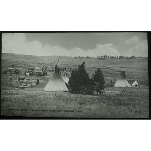 PHOTOGRAPH: 8'' x 14'', Laton Anton Huffman (1854-1931), title: ''American Horses Camp, Cheyenne Reservation, Montana - 1889''. Huffman captured the ever changing Montana history of his day and was the post photographer for Fort Keogh in Eastern Montana. Presented in a simple frame. Signed in the print ''L.A. Huffman 20'' and stamped on reverse ''L.A. Huffman-Coffrin Studio, Agent Miles City Mont. #20''