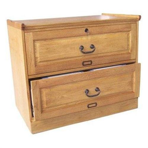 SAME AS THE 8822M LATERAL FILE CABINET BUT WITH NEW STYLE PULLS. Shown in the LD finish, also available in the HD finish(medium oak distressed finish), our most popular finish. These finishes are also available in our Desk. Locking drawers, accepts letter or legal files that hang front to back. no particle board. Backs, as well as drawer sides and backs and bottoms are solid wood constructed with dovetail joinery. Overall dimensions,36in wide x 22in deep x 30in height.