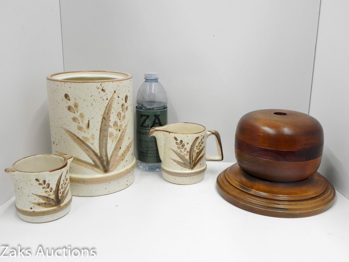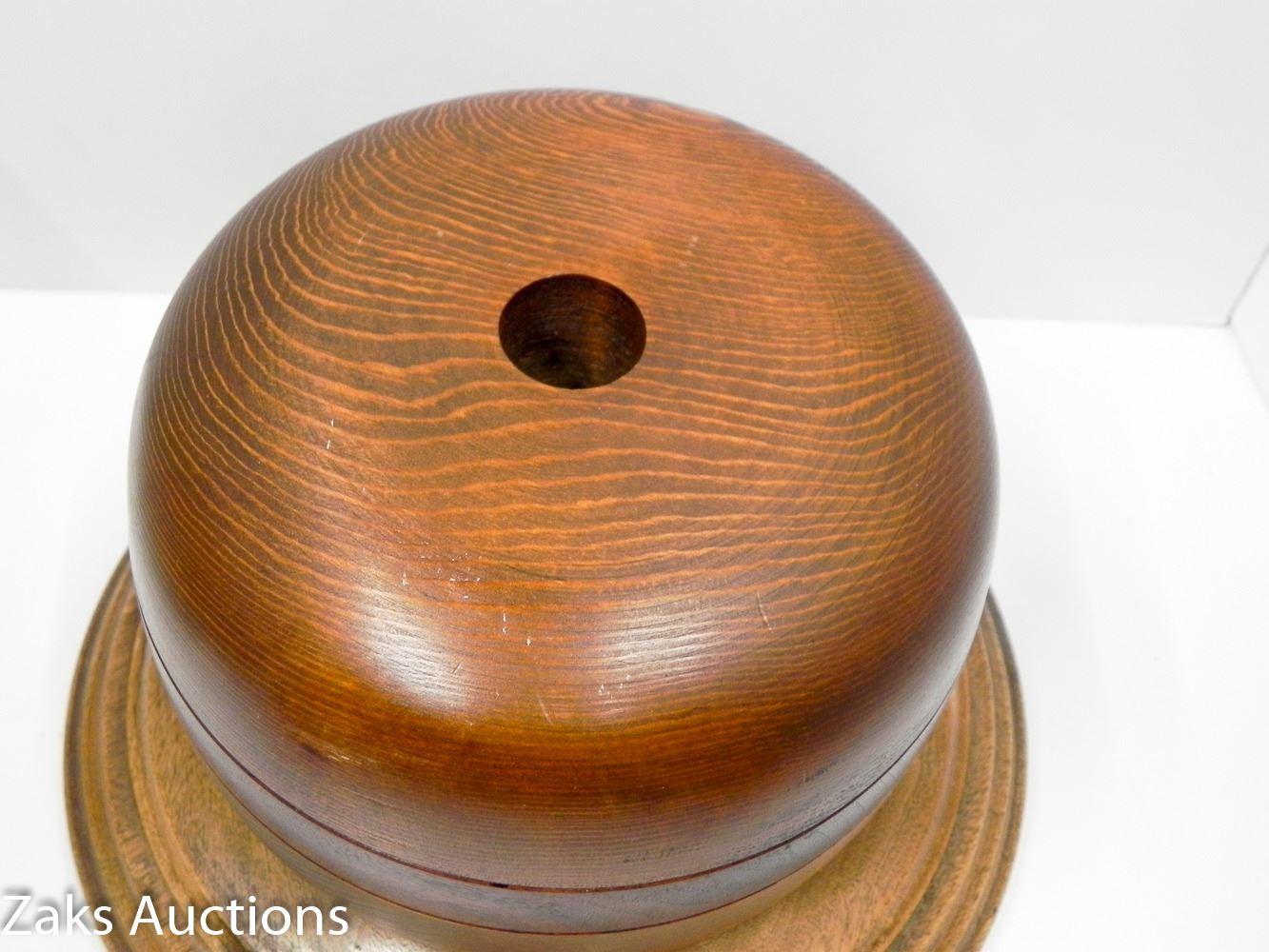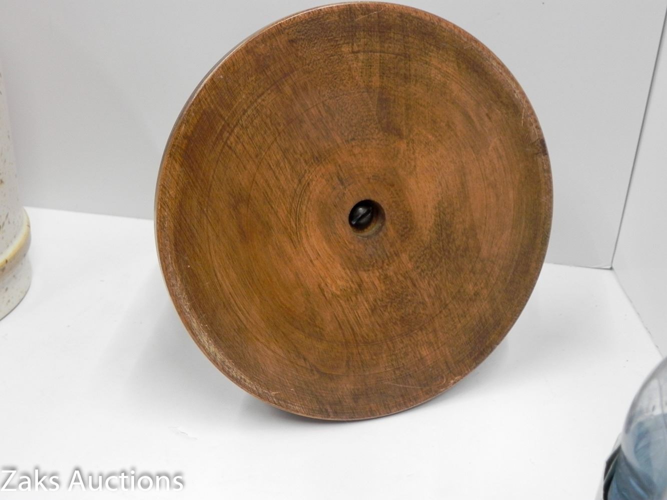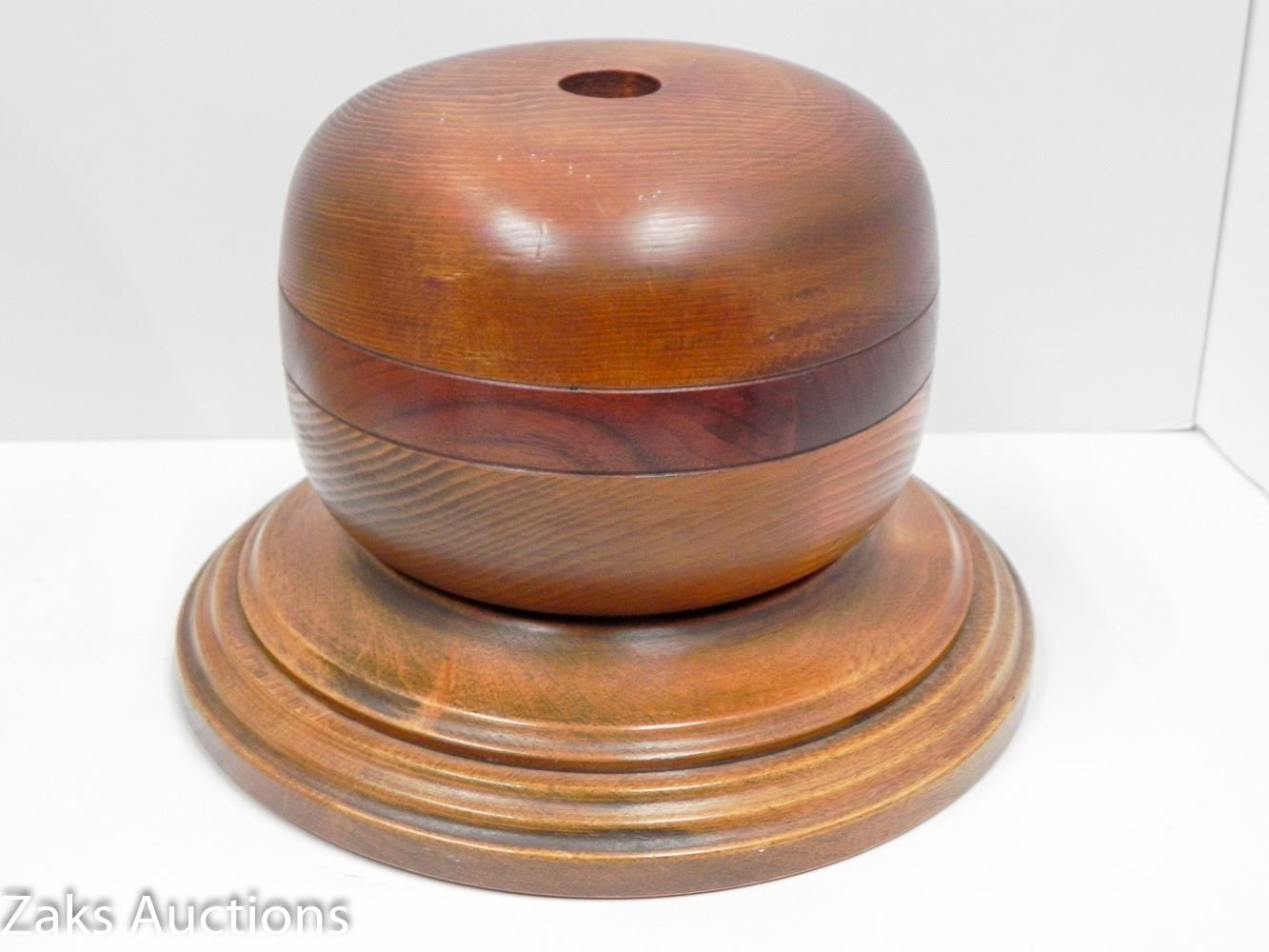 MID CENTURY CANADIAN LAURENTIAN POTTERY & TURNED SOLID HARDWOOD ROTATING HAT DISPLAY