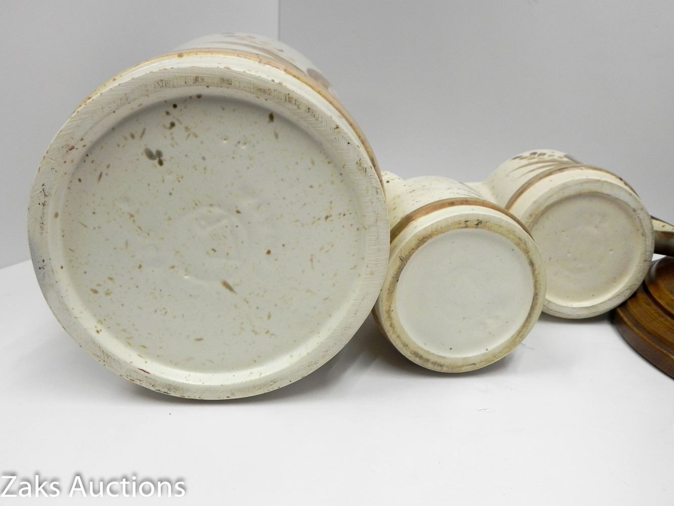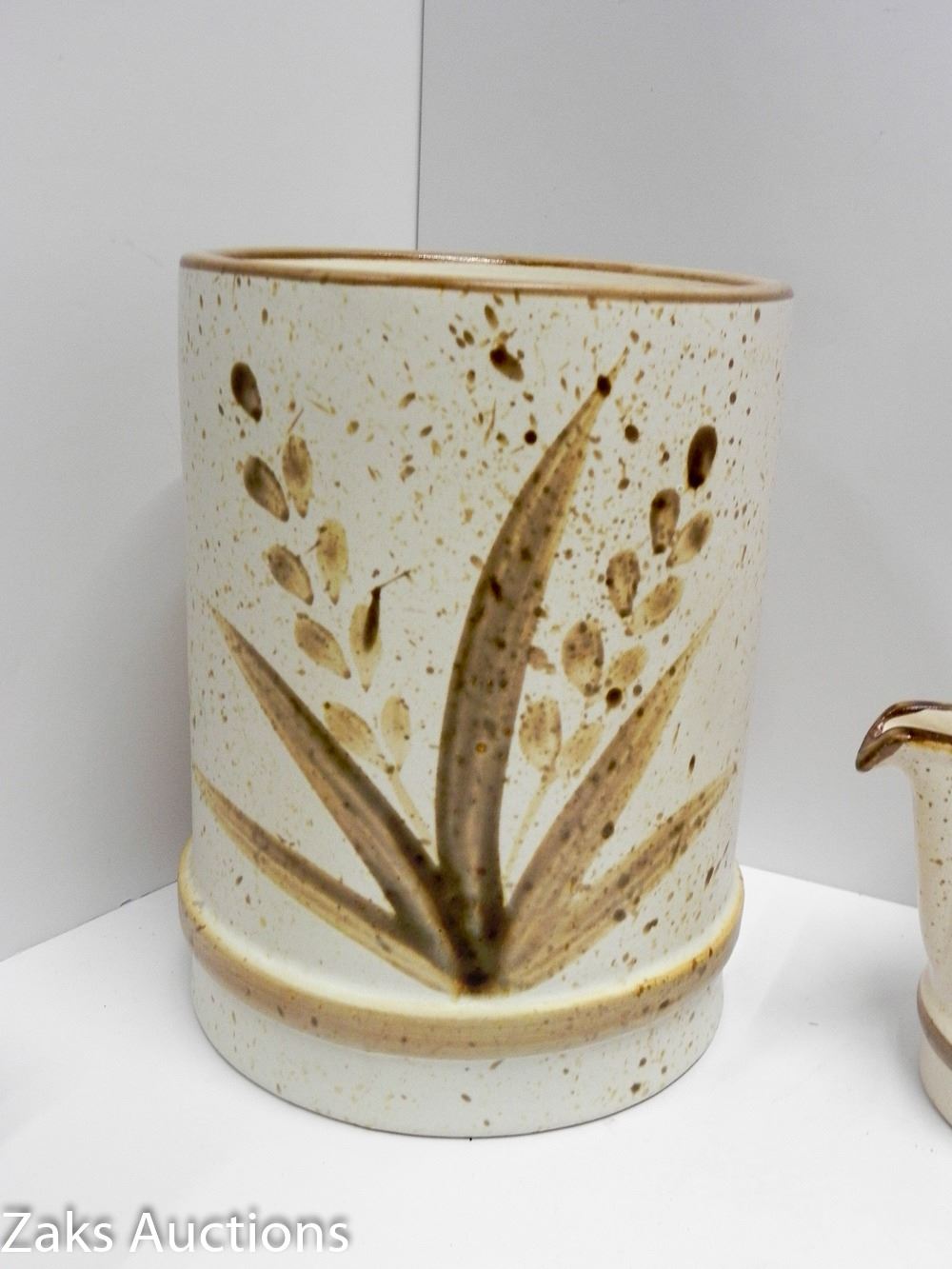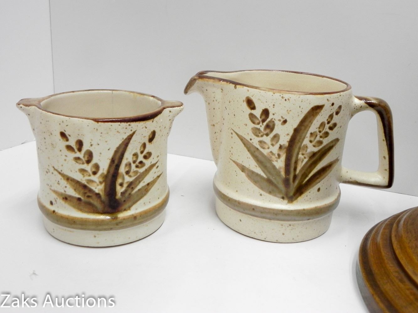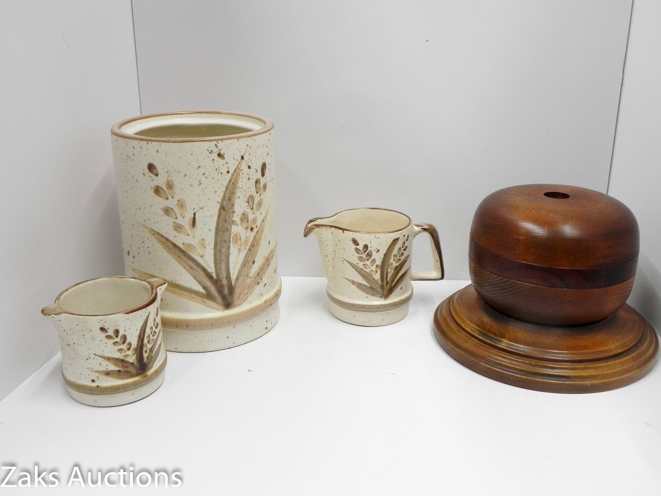 MID CENTURY CANADIAN LAURENTIAN POTTERY & TURNED SOLID HARDWOOD ROTATING HAT DISPLAY