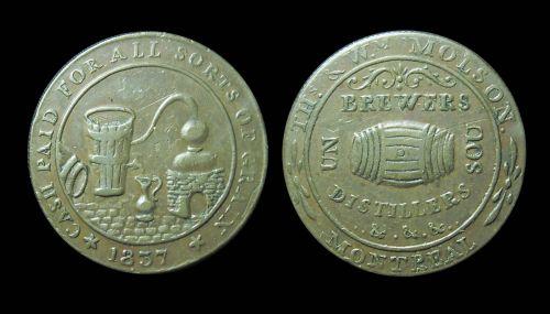 LC-16a3 Breton# 562 Molson Montreal brewers, 1837 Thin flan, reeded edge. A nice glossy EF example. Scarce!