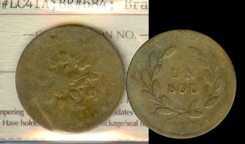LC-41A; Breton 684 BRASS UPSET DIES ICCS G4. Unlisted in Charlton catalogue. Believed to be extremely rare. First one seen by the cataloguer.