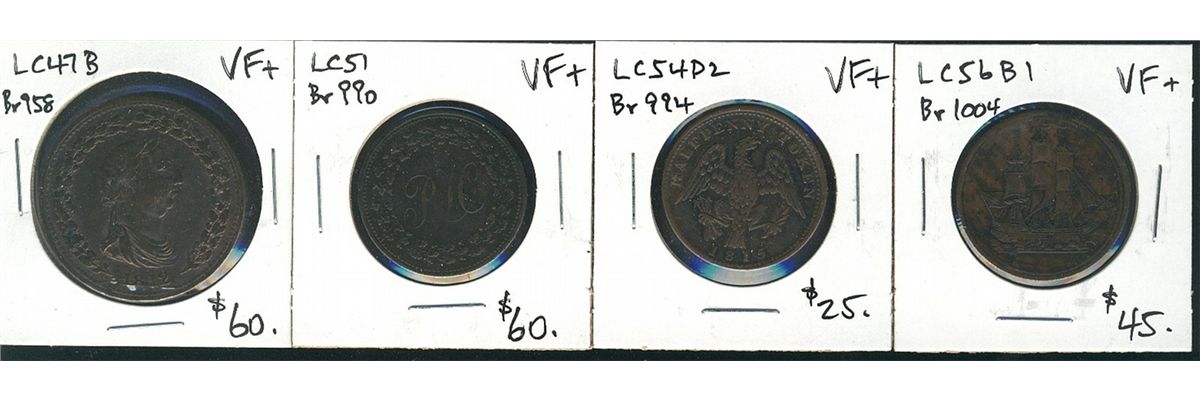 LC-47B, LC-51, LC-54D2 & LC-56B1 all VF+. Lot of 4 tokens. (PBBC).