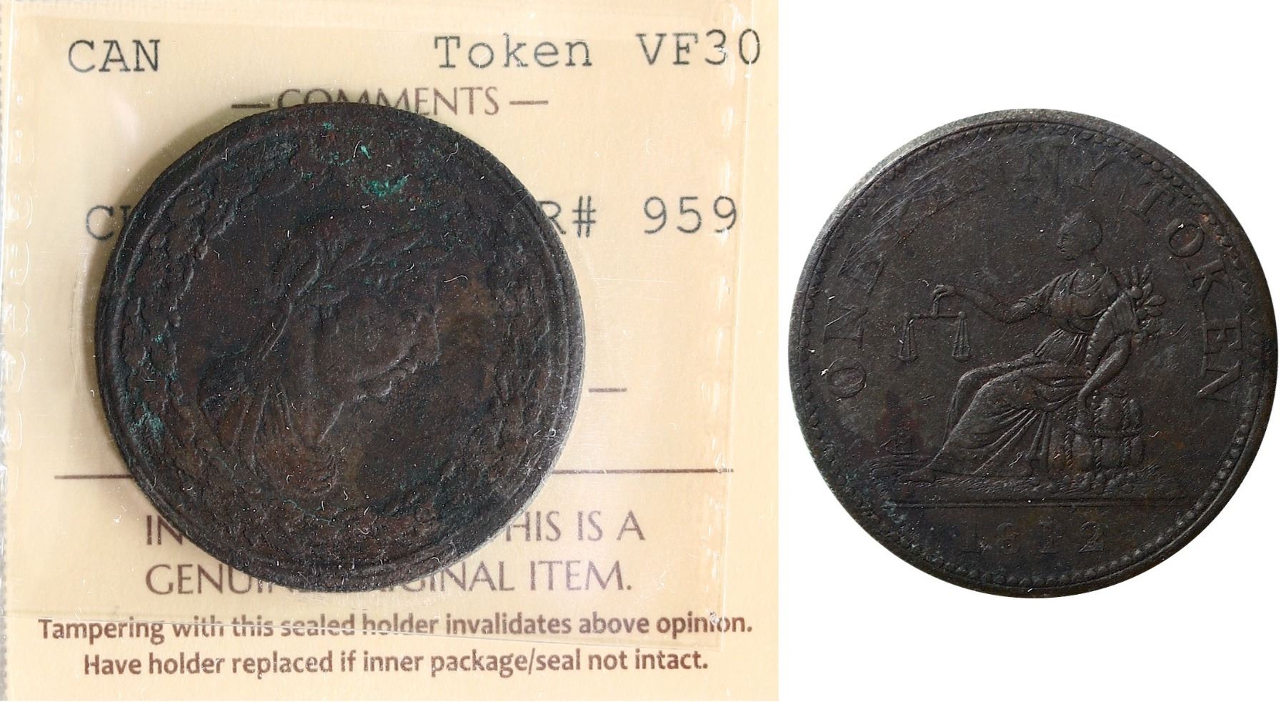 LC-47D6, Br:# 959, Scarce type, One penny token Tiffin, ICCS graded VF30.
