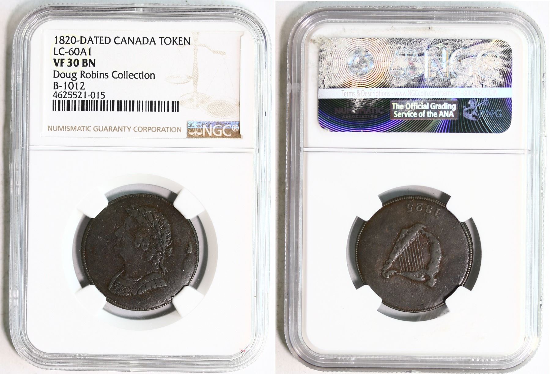 LC-60-21 Br.#1012 - 1820, NGC VF30, dated "1825 Copper"- Six flaps in the cuirass, Co. 21BH, BH-21; Previously LC-60A1. A pleasing example with sharp details and problem free. Seldom seen and offered variety! Worth a premium bid.