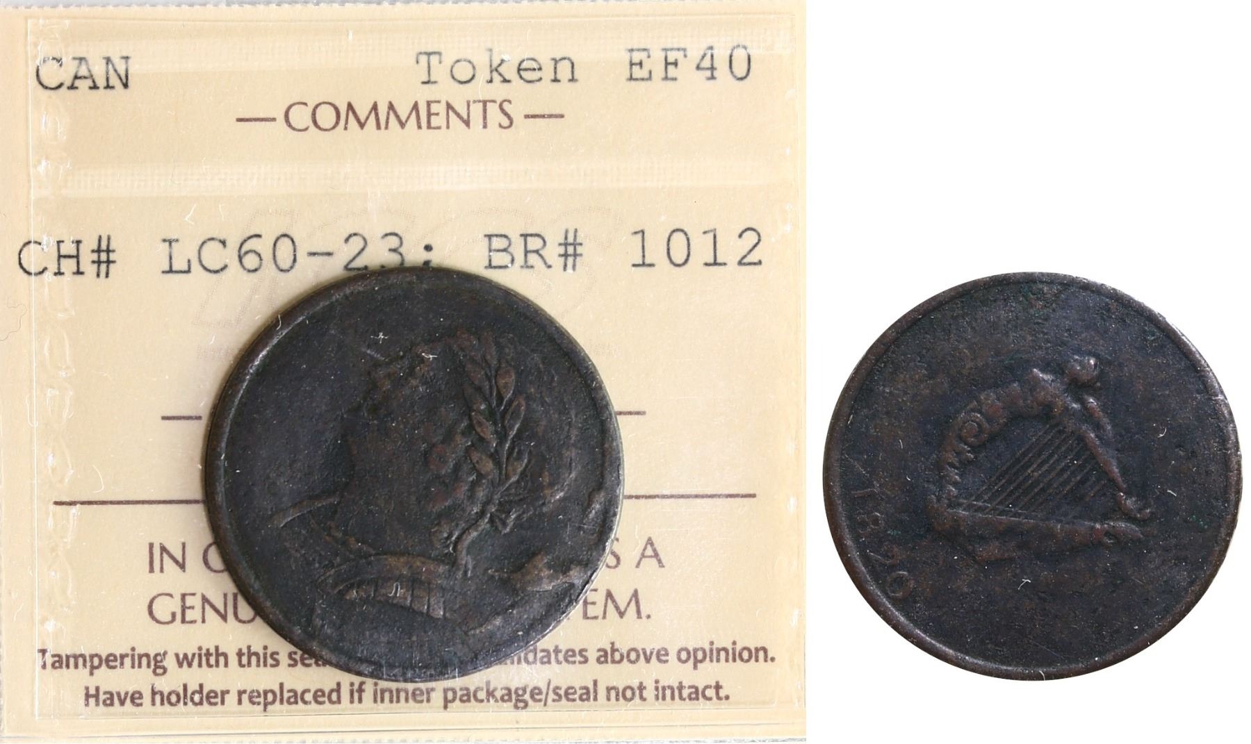 LC-60-23, Br:# 1012, ICCS EF40, Scarce "copper type". Hard to find Bust & Harp token in nicer grade.