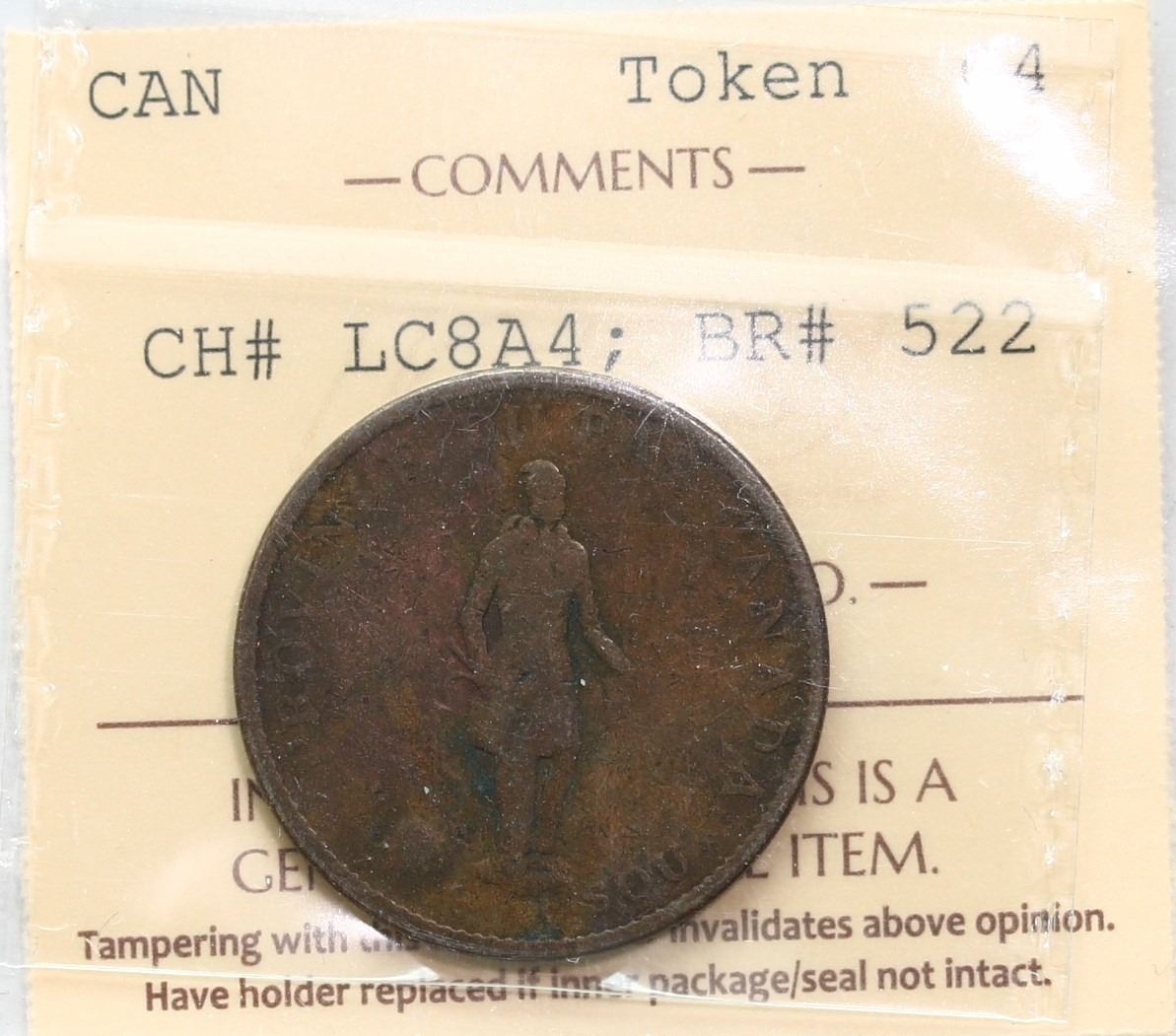 LC-8A4, Breton #522 ICCS G4 ? ?, Very few examples known Charlton only lists this as ''RARE'' with no estimates in the latest edition. This is first example ever offered by us.
