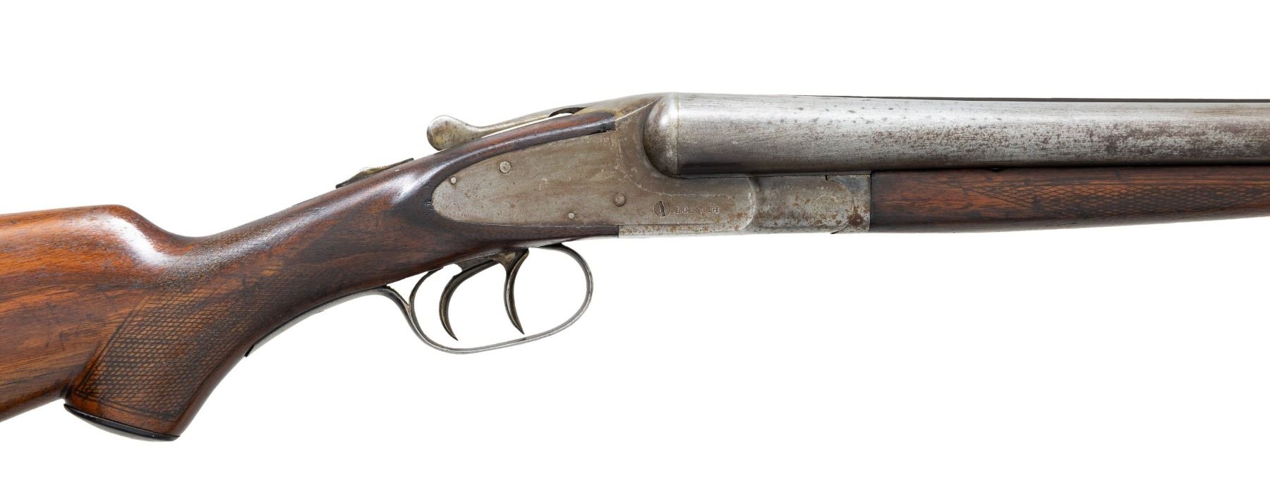 Cal. 12 ga. 2 5/8". S#. FW24039. Bbls. off Armor Steel are cut to 28" with Cyl & Cyl. bores. Brass bead. Boxlock action with double triggers, extractors & 3 position safety. Forend & capped pistol grip stock of checkered walnut. LOP; altered to 14 5/8" over an after market White Line pad. Weight: 6 lbs., 12.2 oz. CONDITION: bbl. & action have a gray appearance showing partial cleaning with some light pitting. Sanded & refinished wood has weakened checkering showing small chips cracks & marks. Sound action. good bores. (25-3585/DS). CURIO. $300-500.