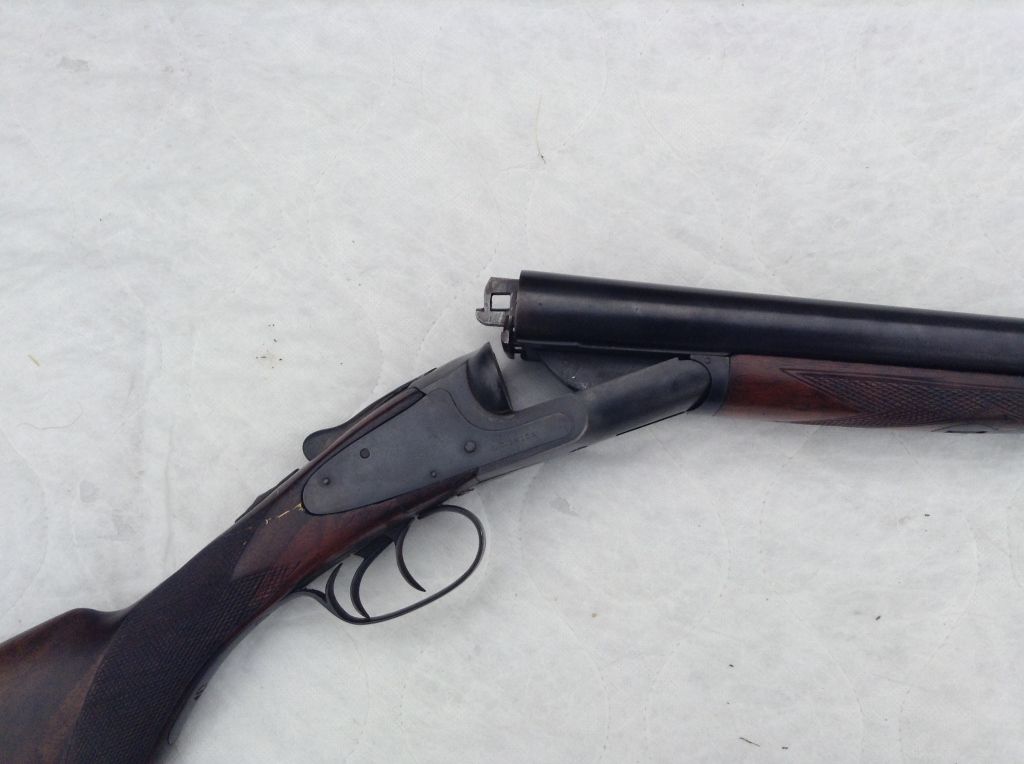 LC Smith 12 Guage damascus SXS double barrel shotgun. Refinished, repaired, reblued. Ser. #4658