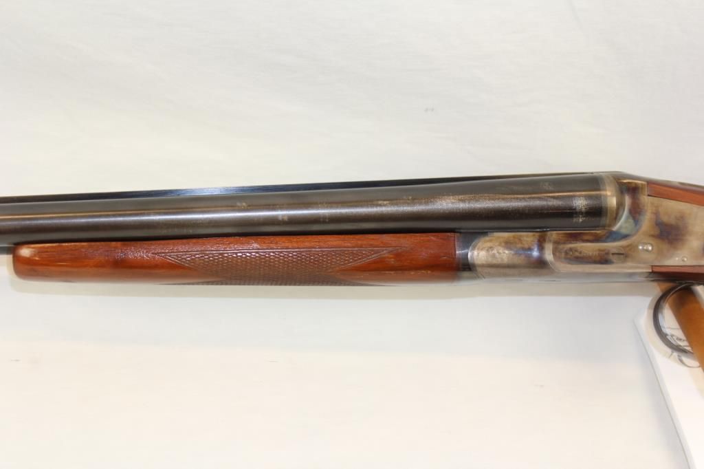28" Barrel SxS. F/F. Overall Case Coloring in very nice Condition. Barrels have some loss of finish in areas of contact. Light handling Marks on Stock. Pistol grip cap chipped.