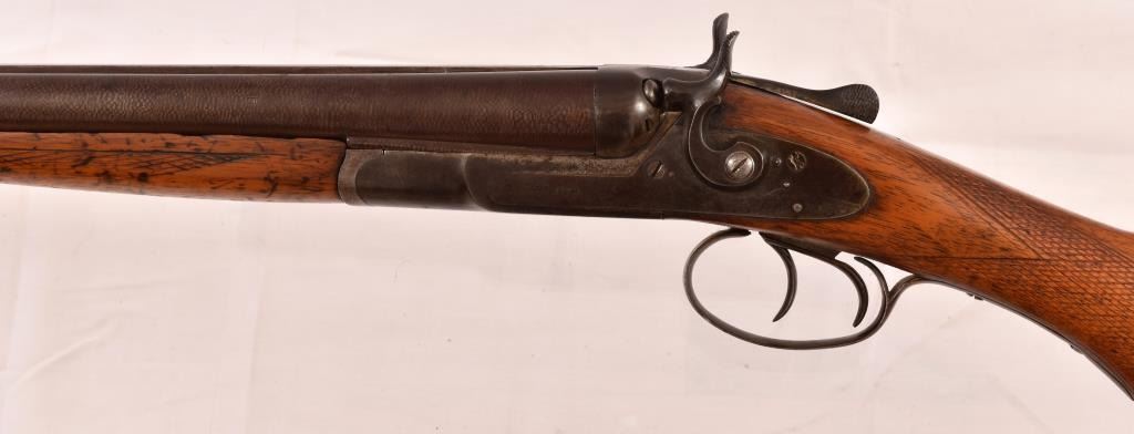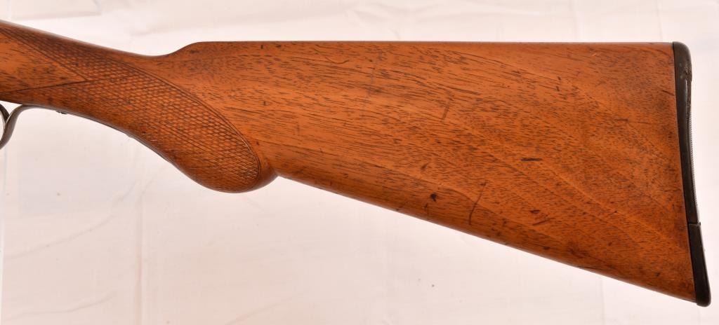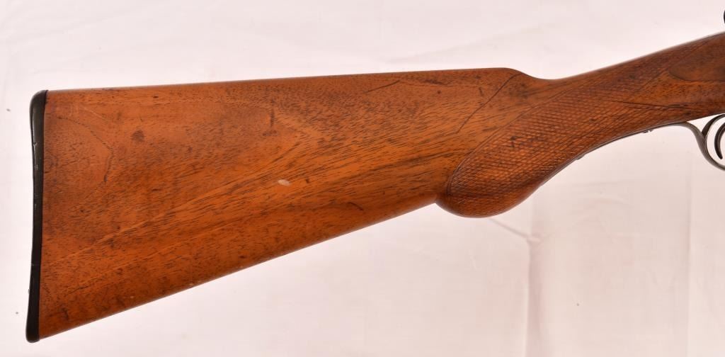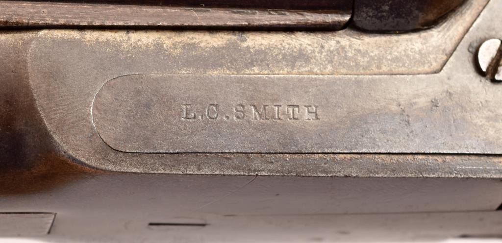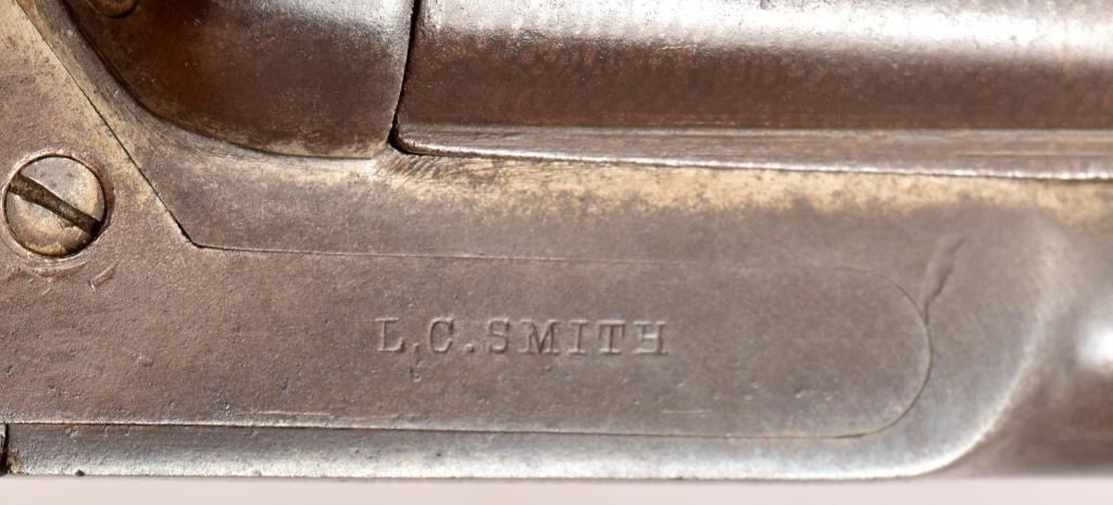 S/N 57992. Damascus 28" barrels. Left side receiver engraved "L.C. Smith".