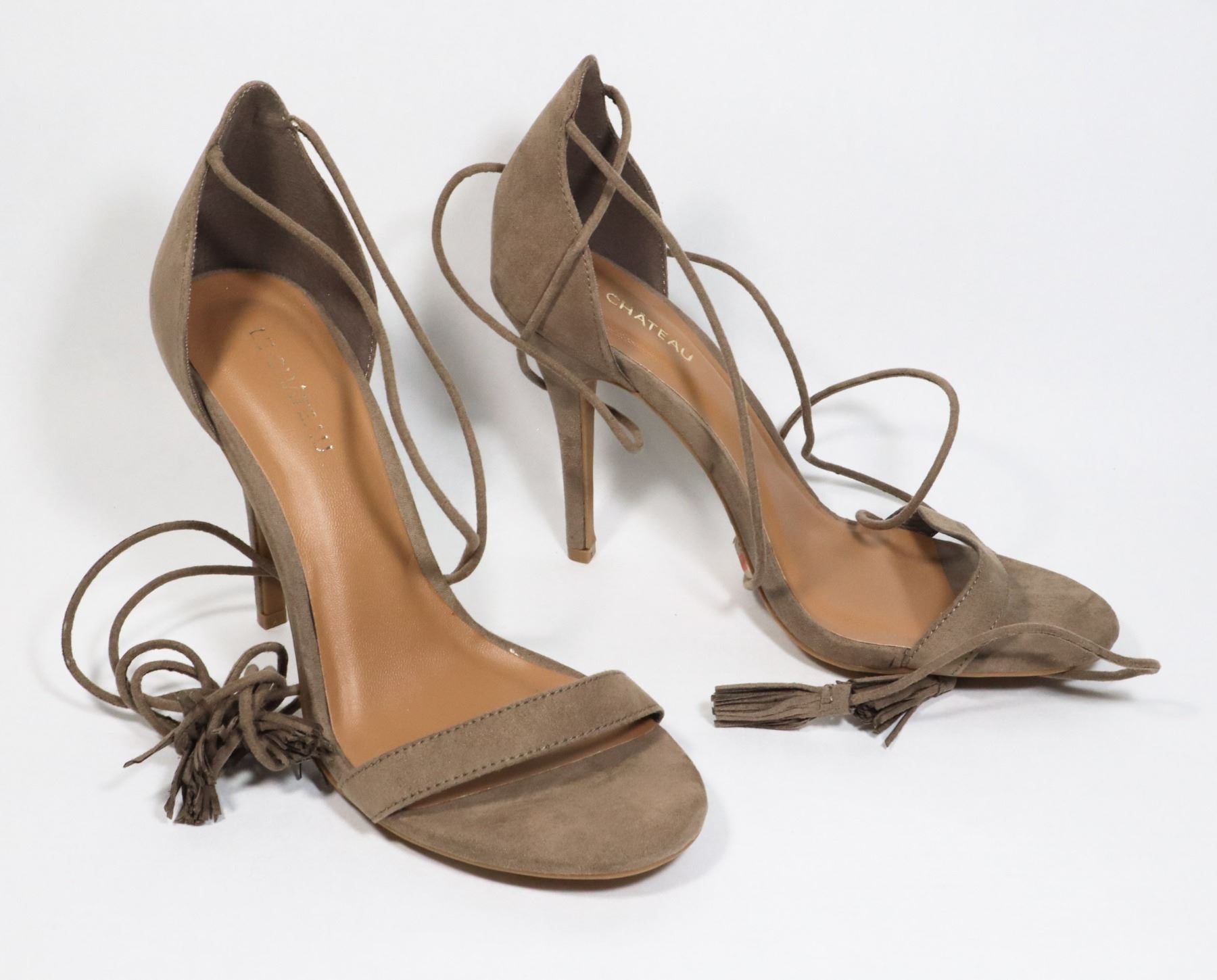 LE CHATEAU BROWN SUEDE LACE UP HEELS SIZE 8 NEVER
