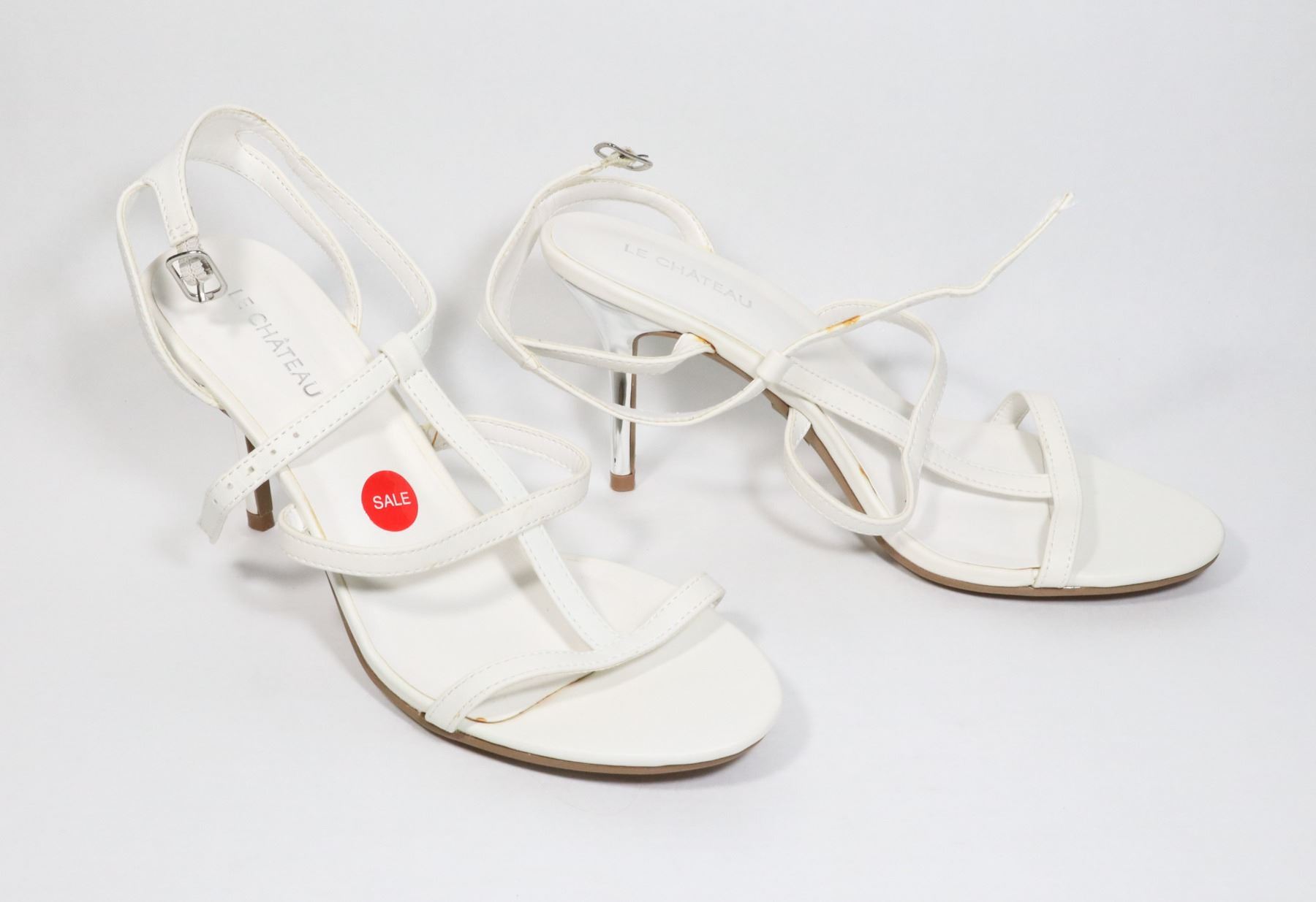 LE CHATEAU WHITE STRAPPY PUMPS WITH SILVER HEELS S