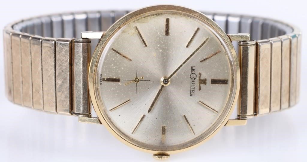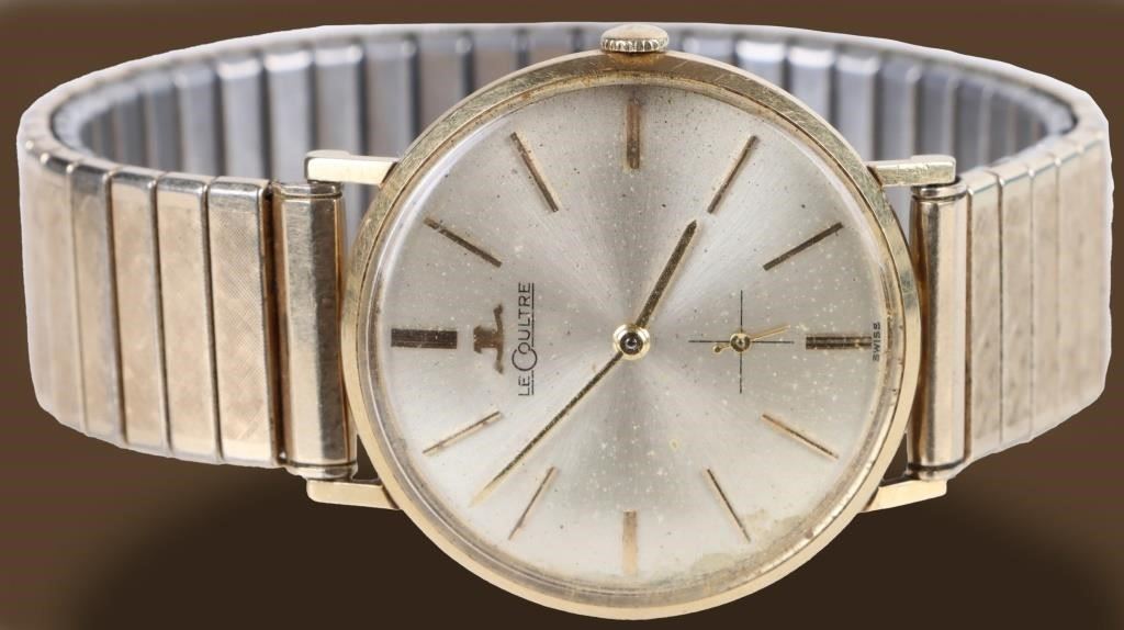 Vintage Le Coultre 18k yellow gold men's wristwatch only watch case and bezel are gold, band is not gold. Wristwatch Mens