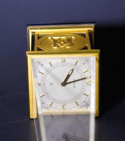 LeCoultre Egyptian Revival 8-day clock. Model number 462. Good working condition. Measures 9 1/4" height.