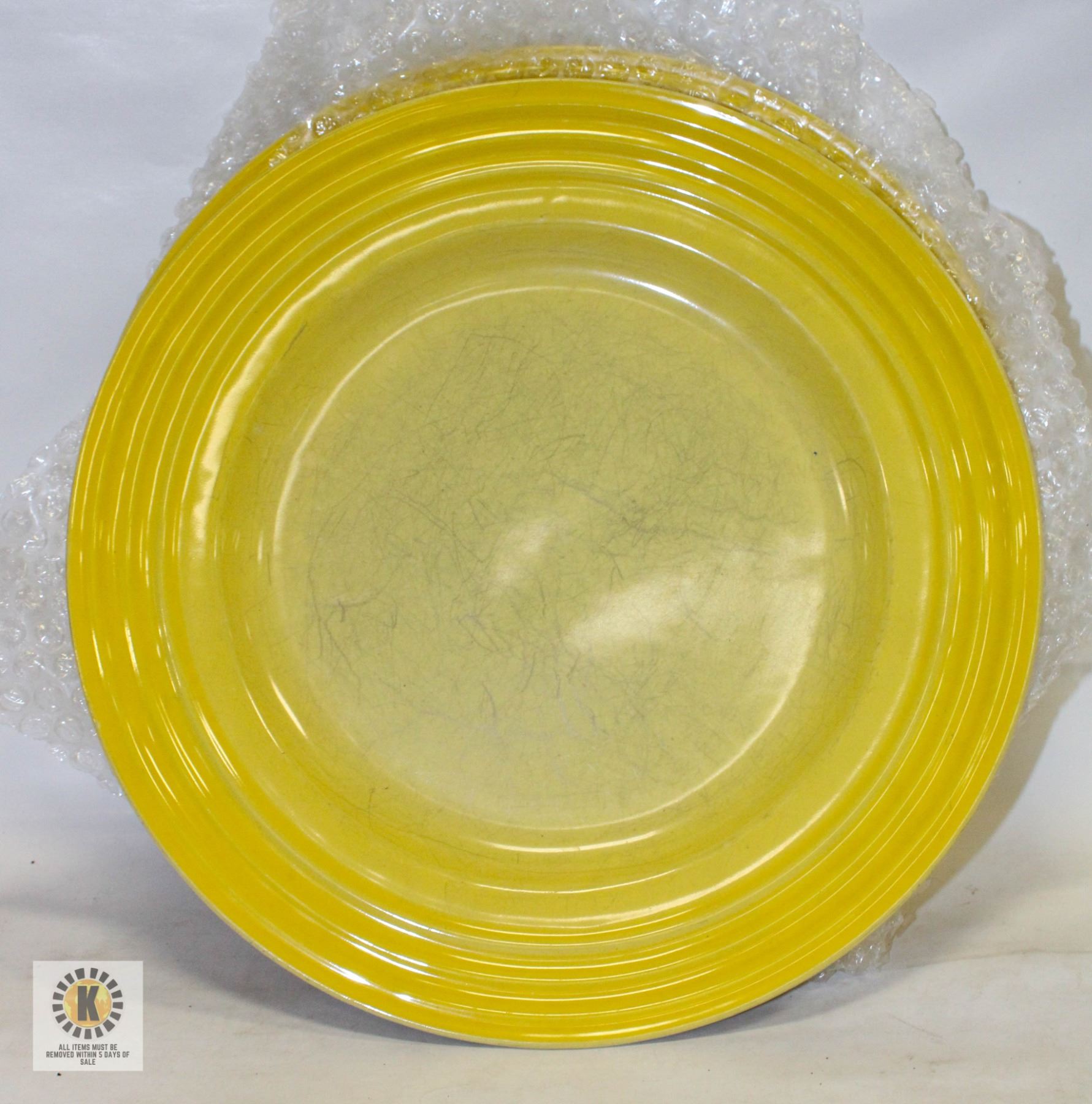 LE CREUSET VINTAGE 12" YELLOW DINNER PLATES SET O
