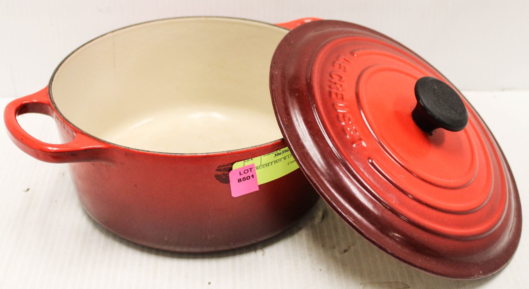 LE CRUESET POT W LID CHIPPED