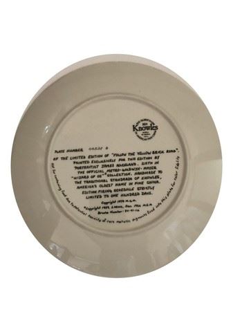 This is a limited edition ceramic plate from Knowles Knowles fine China featuring Glenda the Good Witch from the Wizard of Oz. The plate is from the limited edition of "Follow the Yellow Brick Road" printed exclusively for this addition by portraitist James Auckland. It is the sixth in the official MGM Wizard of Oz collection. Plate number is 00538D.