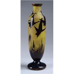 Lot 813 LE VERRE CAMEO VASE Monumental sized flying geese vase. Signed “Le Verre Francais”. SIZE: 17-1/8” t. CONDITION: Very good to excellent. 5-70526