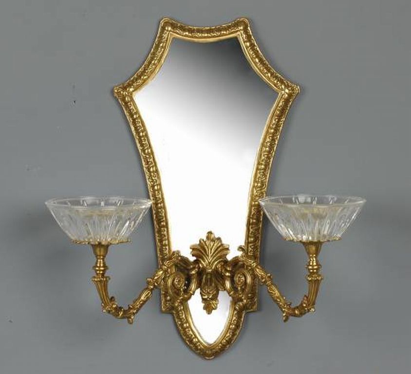 FINE ITALIAN LEAD CRYSTAL MIRROR CANDLEHOLDER - WALL MOUNT - 15x13.3x6.7