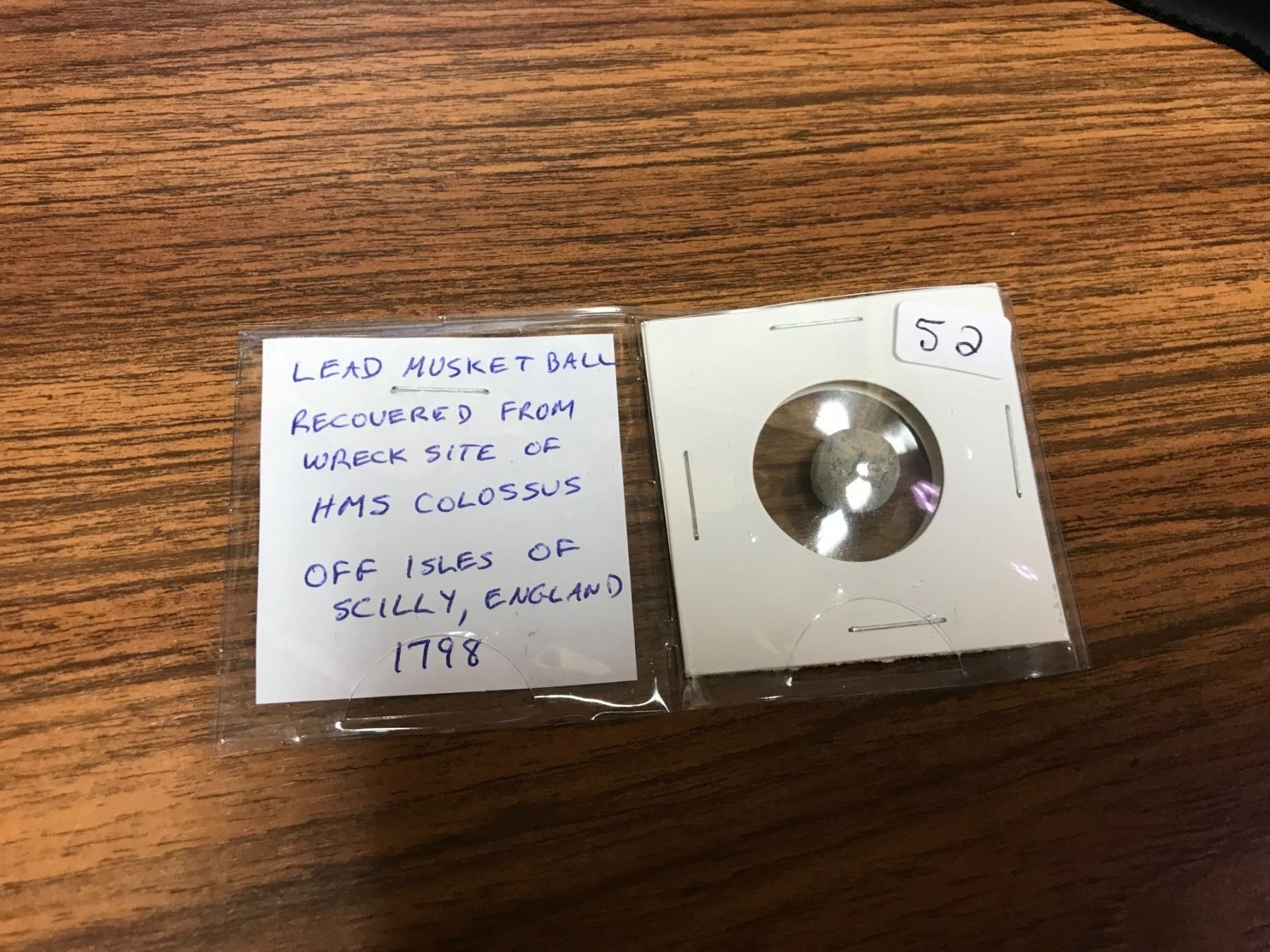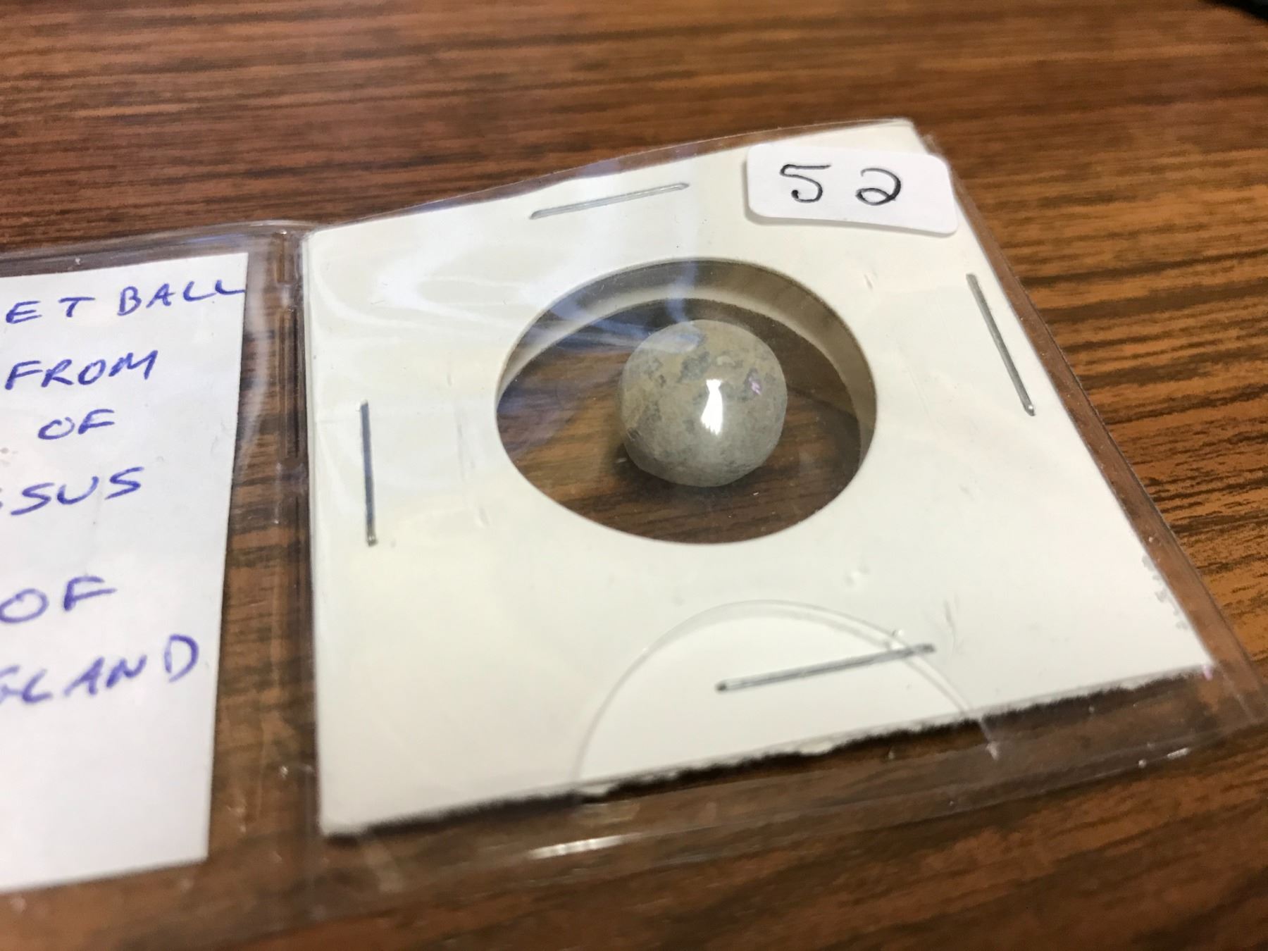 LEAD MUSKET BALL RECOVERED FROM THE WRECK SITE OF HMS COLOSSUS, WHICH SANK OFF THE ISLES OF SCILLY, ENGLAND IN 1798.