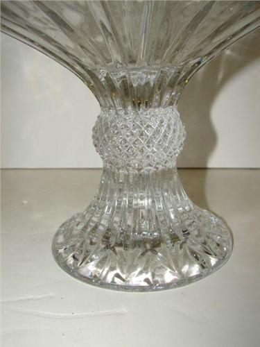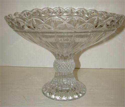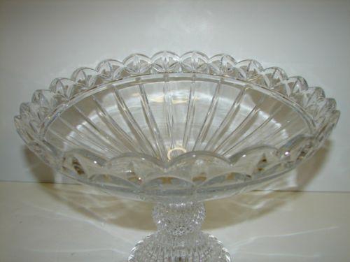 LEADED CRYSTAL GLASS CENTER COMPOTE. No mark. 8.5” H, 11.5” Dia.