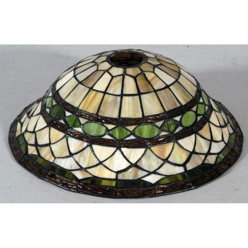 LEADED GLASS LAMP SHADE, 13" diameter, CONDITION REPORT: some cracks. PACKING AND SHIPPING: We offer packing (double boxed in most cases) and shipping of this item within the Continental United States by USPS or UPS (our choice- boxes over 30lbs or oversized may be recalculated based on buyer's location), NOT INCLUDING INSURANCE (it will be added when we know the sales price) for $30