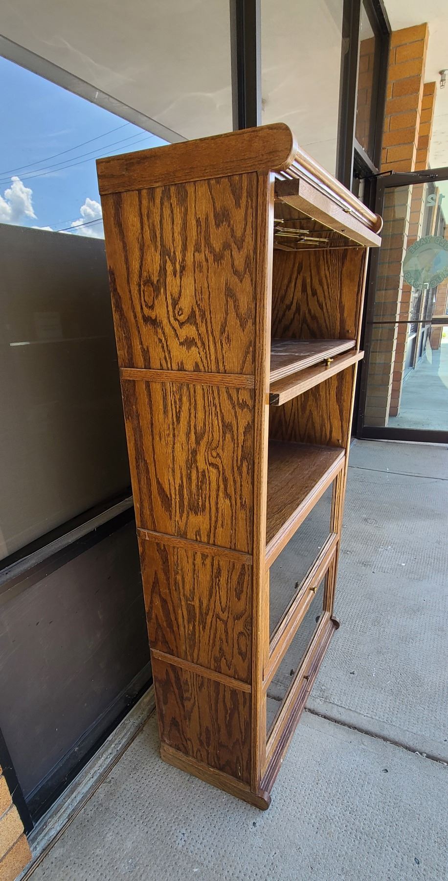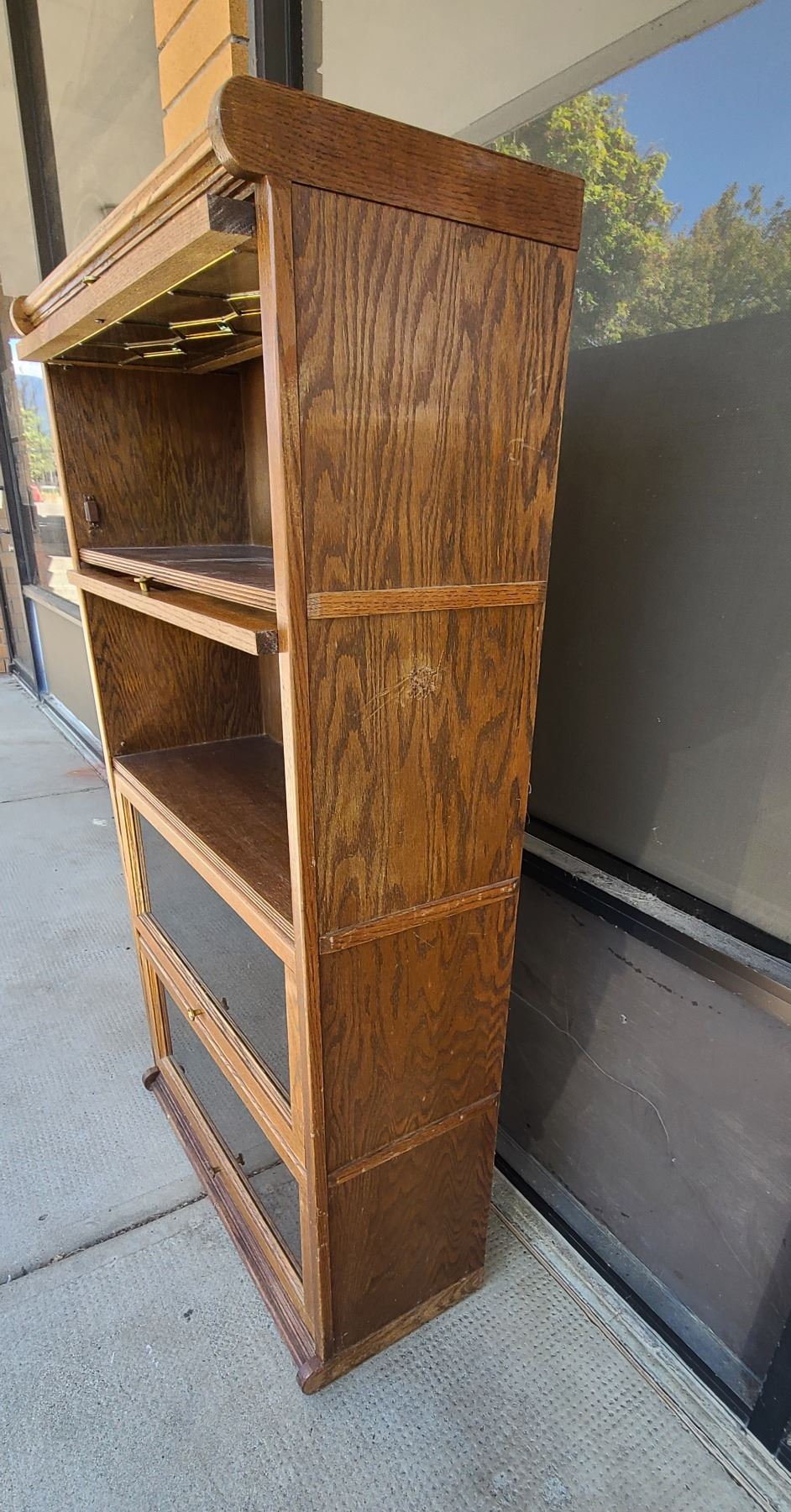 LEADED GLASS OAK BARRISTER BOOKCASE - EARLY REPRODUCTION, NO SHIPPING