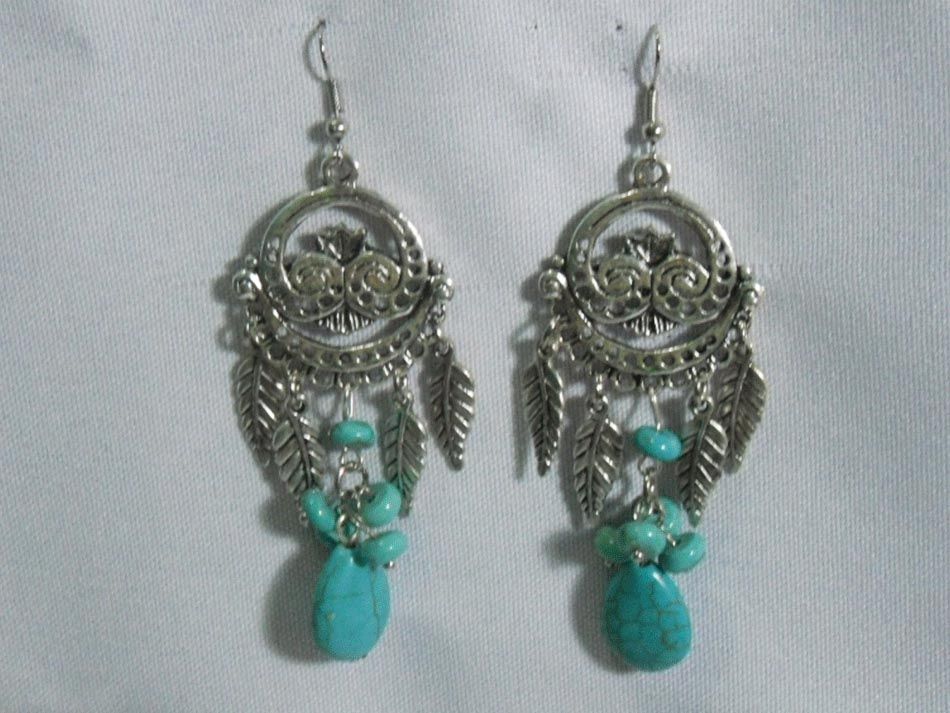 LEAFY BLUE TURQUOISE DANGLING EARRINGS STONE BLUE TURQU **|**|** LEAFY BLUE TURQUOISE DANGLING EARRINGS STONE BLUE TURQUOISE METAL BRASS ; MSRP: $150