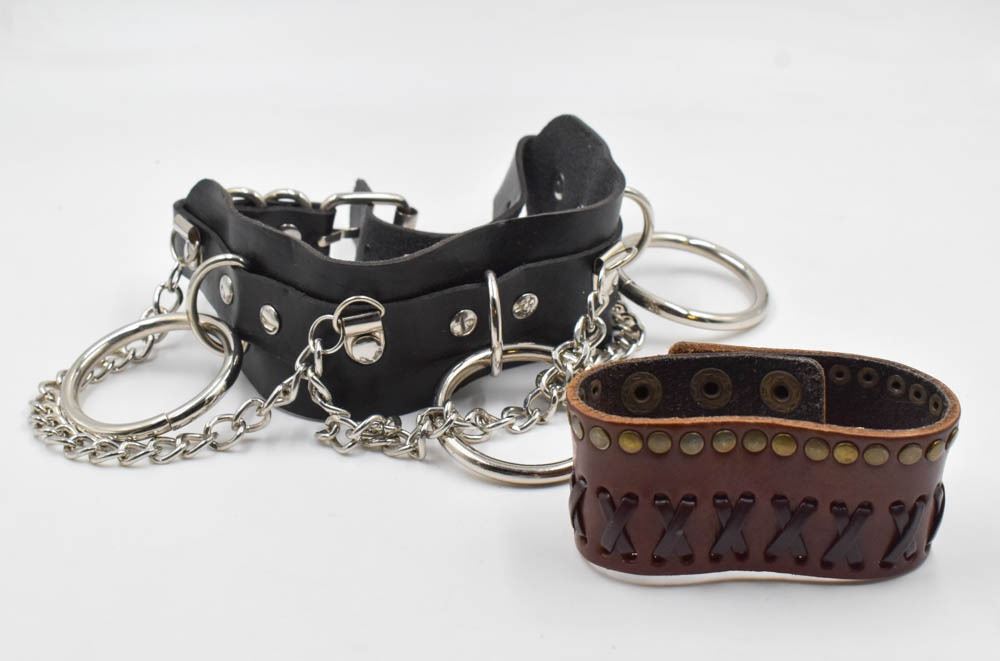 LEATHER CHOKER & WRIST BAND BRACELET-ESTATE