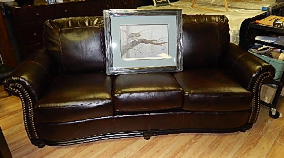 LEATHER COUCH - WITH STUDDED ACCENTS - NEW - BROWN