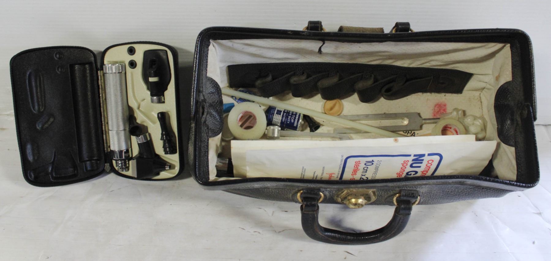 LEATHER DOCTOR'S BAG WITH MED EQUIPMENT