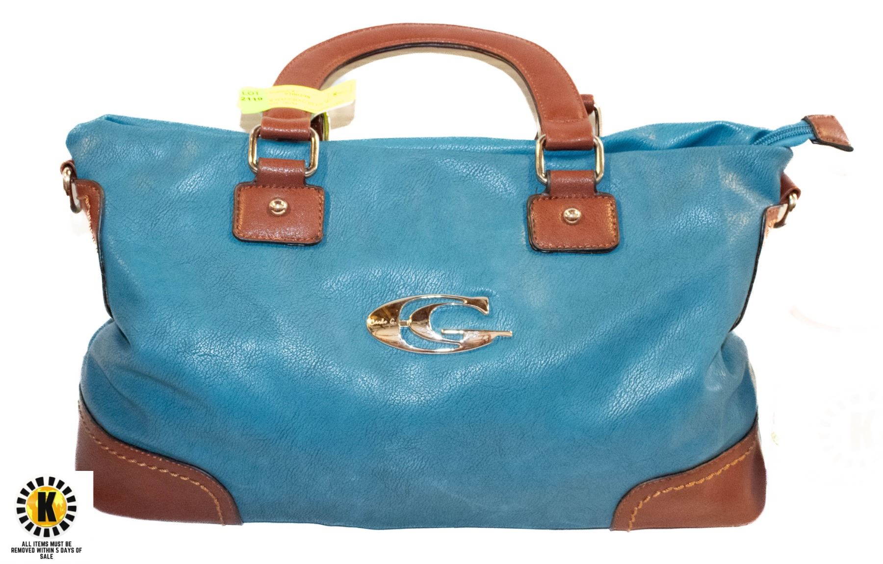 LEATHER HANDBAG BLUE W/ BURGUNDY TRIM