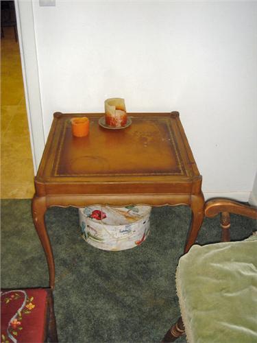 LEATHER INLAIDEND TABLE - STAINED CORNER