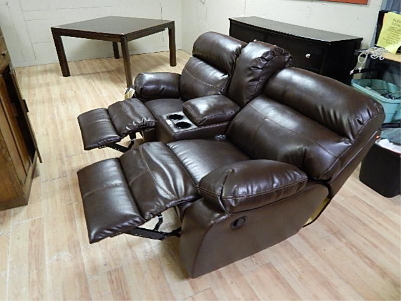 LEATHER LOVESEAT - NEW - SIDE-BY-SIDE RECLINING - WITH BUILT IN CONSOLE