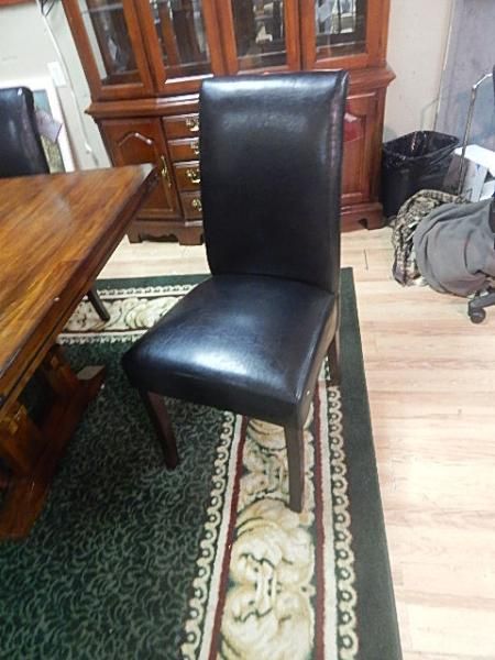 LEATHER PARSON DINING CHAIRS - BLACK - NEW - 6 X BID