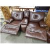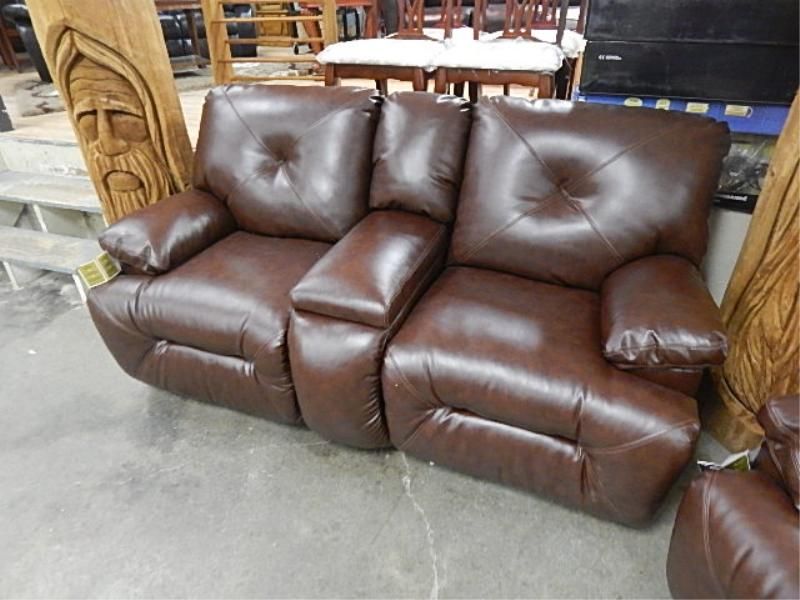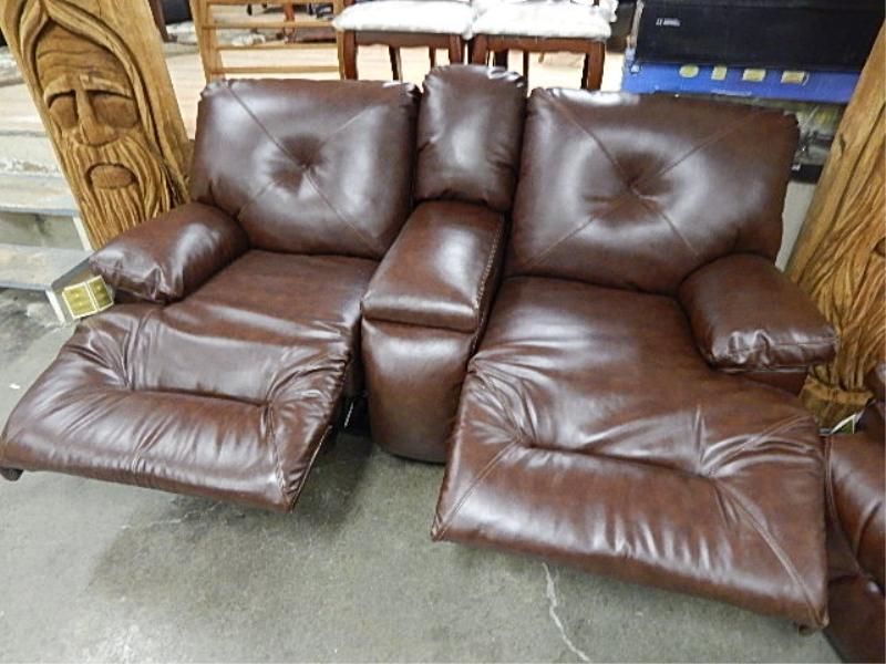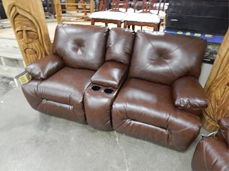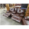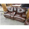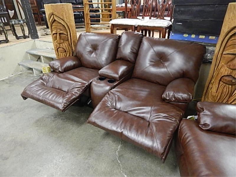 LEATHER RECLINNG COUCH - HIDDEN LEVERS - SLIDING CENTER CONSOLE TO CUP HOLDERS - BROWN - BRAND NEW