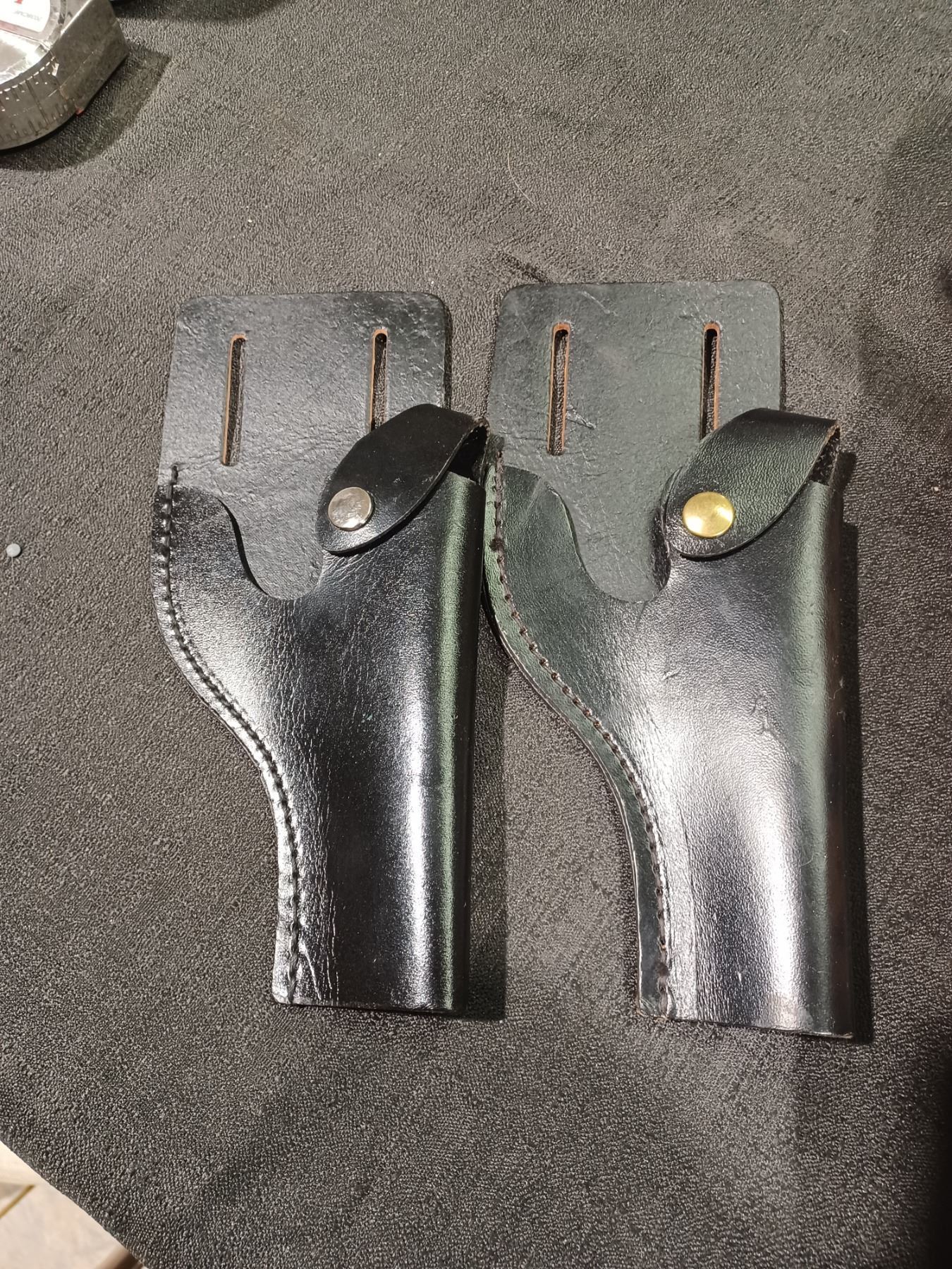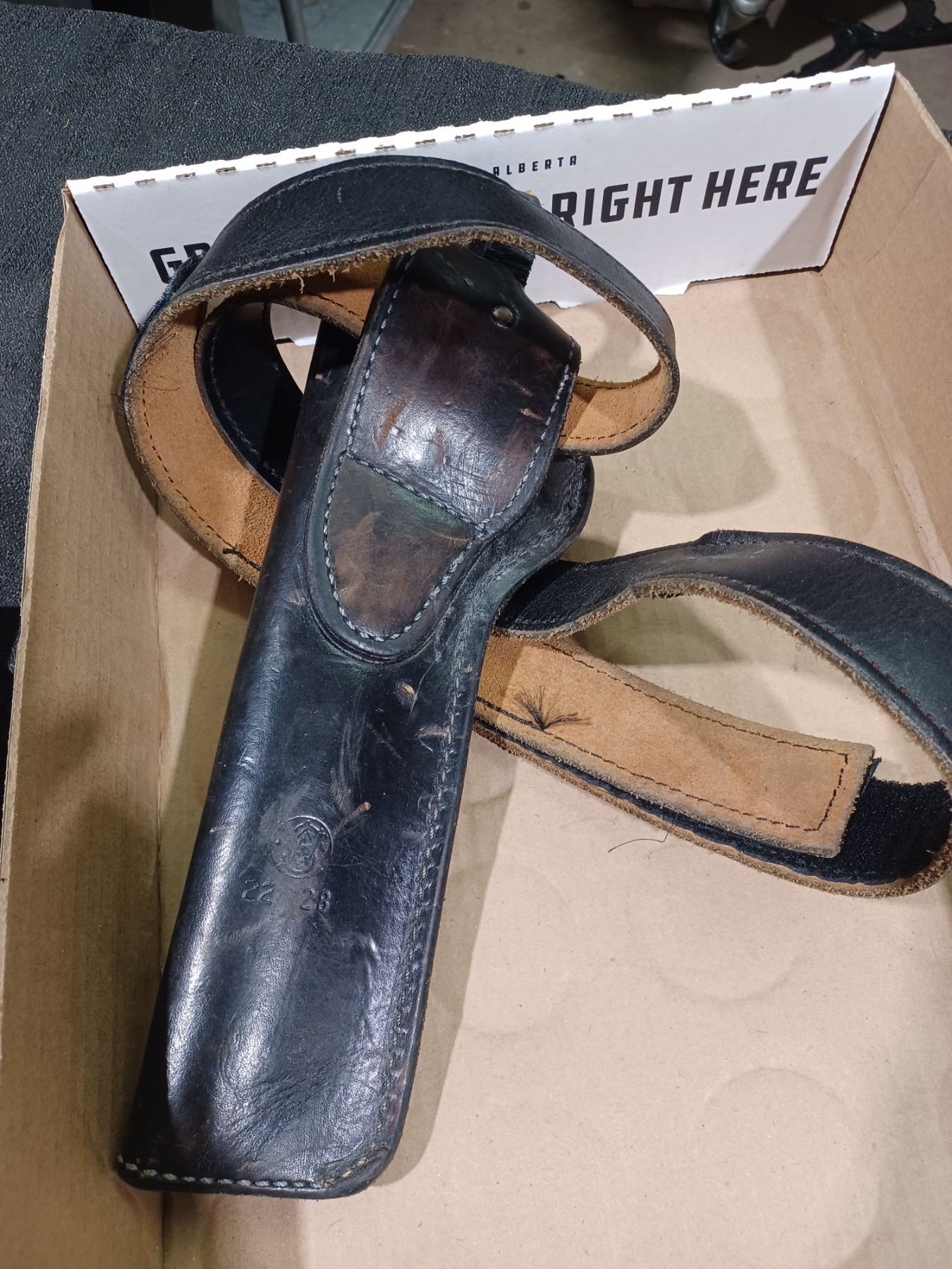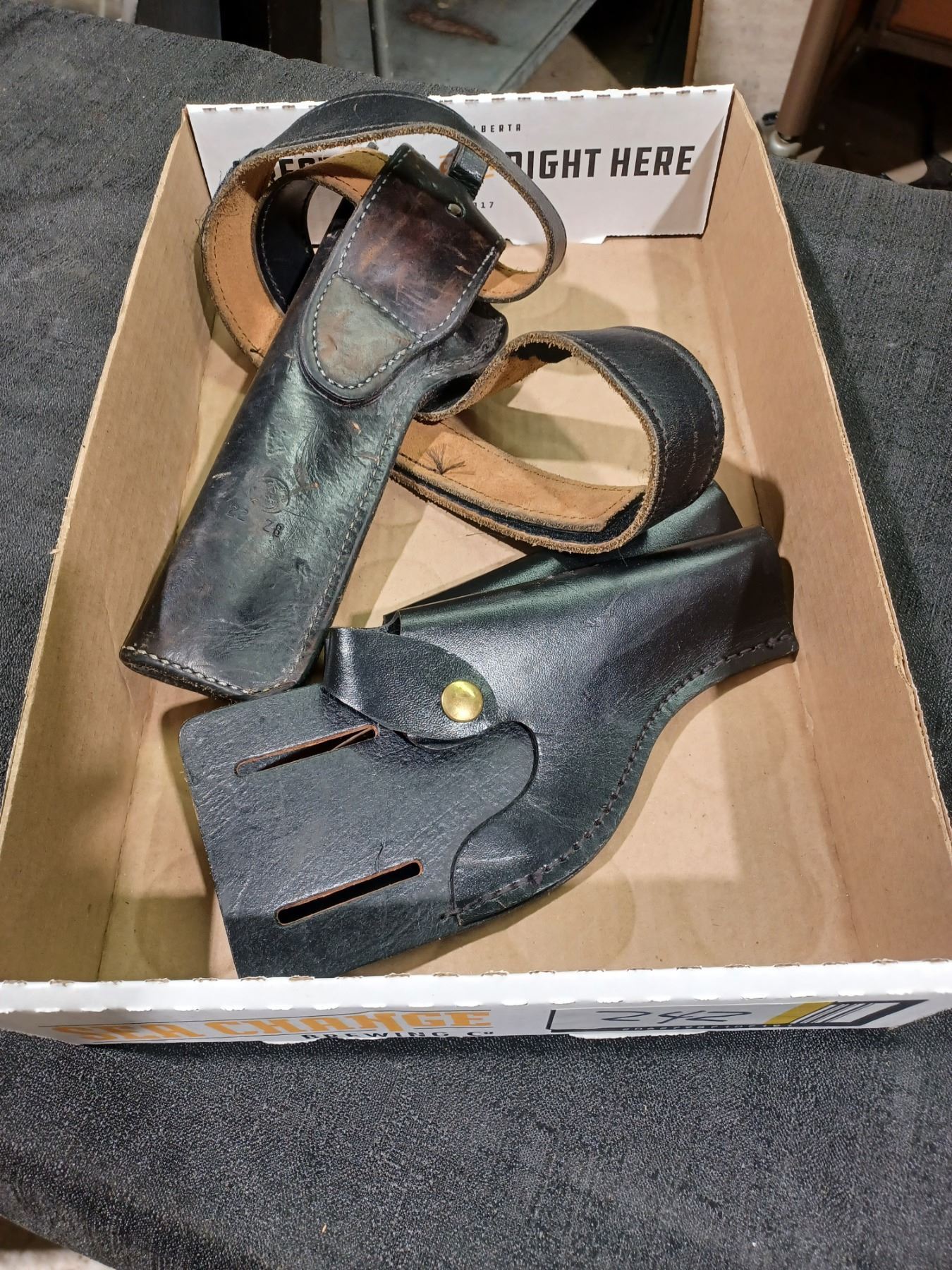LEATHER REVOLVER HOLSTERS AND BELT PLUS 2 NEW HOLSTERS