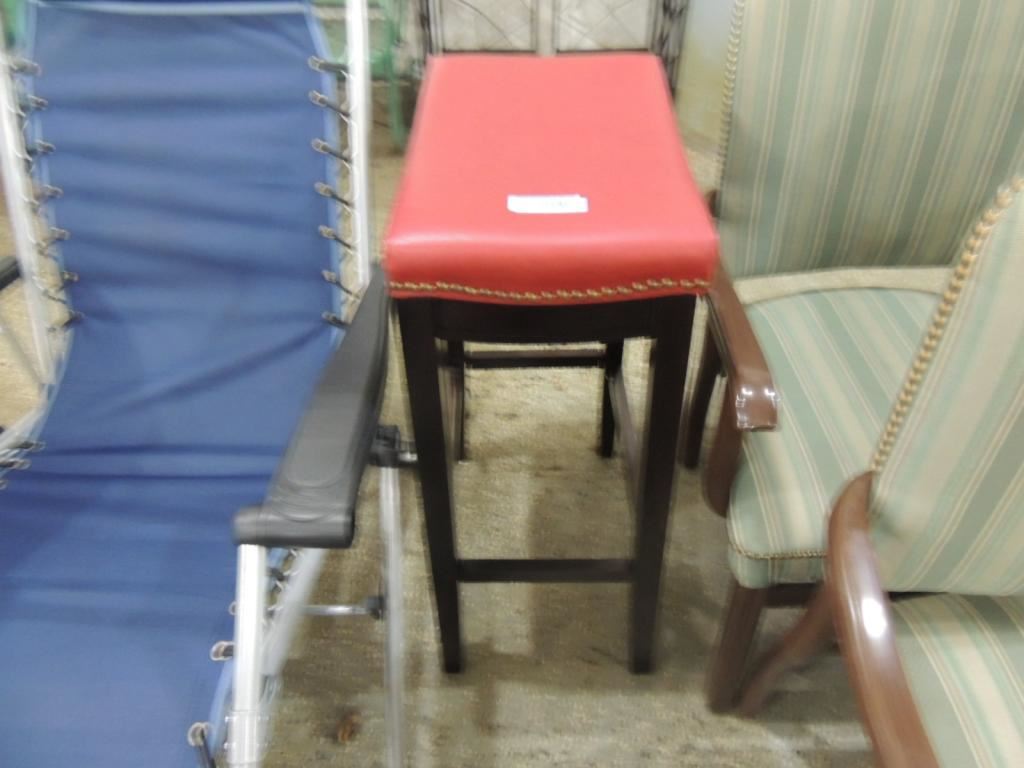 BAR STOOL, VINTAGE STOOL, LEATHER SEAT STOOL AS SHOWN SEE PHOTO FOR MORE DETAILS.