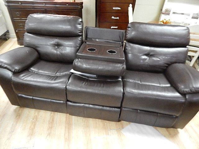 LEATHER SOFA WITH RECLINING ENDS - BROWN - NEW
