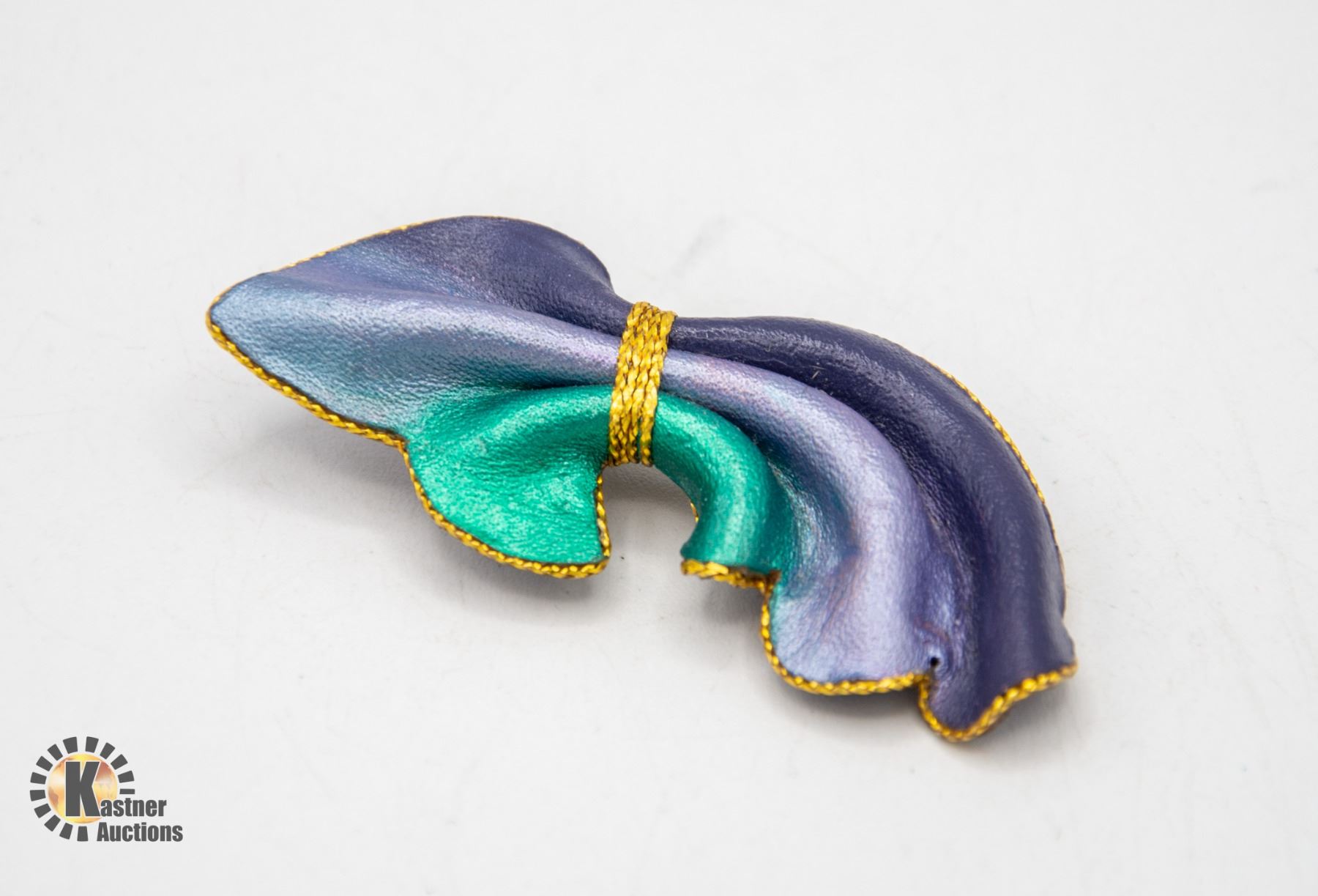 IN IRIDESCENT PLUM & TURQUOISE W/ GOLD TONE ROPE BORDER AND TIE **ALL ITEMS MUST BE REMOVED BY 5PM SATURDAY, MAY 20TH 2023. ALL REMAINING ITEMS WILL BE SUBJECT TO A $6.00 PER DAY STORAGE CHARGE. ANY ITEMS REMAINING AFTER MONDAY, JUNE 5TH, 2023 WILL BE CONSIDERED FORFEITED. NO REFUNDS WILL BE ISSUED FOR FORFEITED ITEMS. TO SCHEDULE A PICK UP APPOINTMENT CLICK HERE