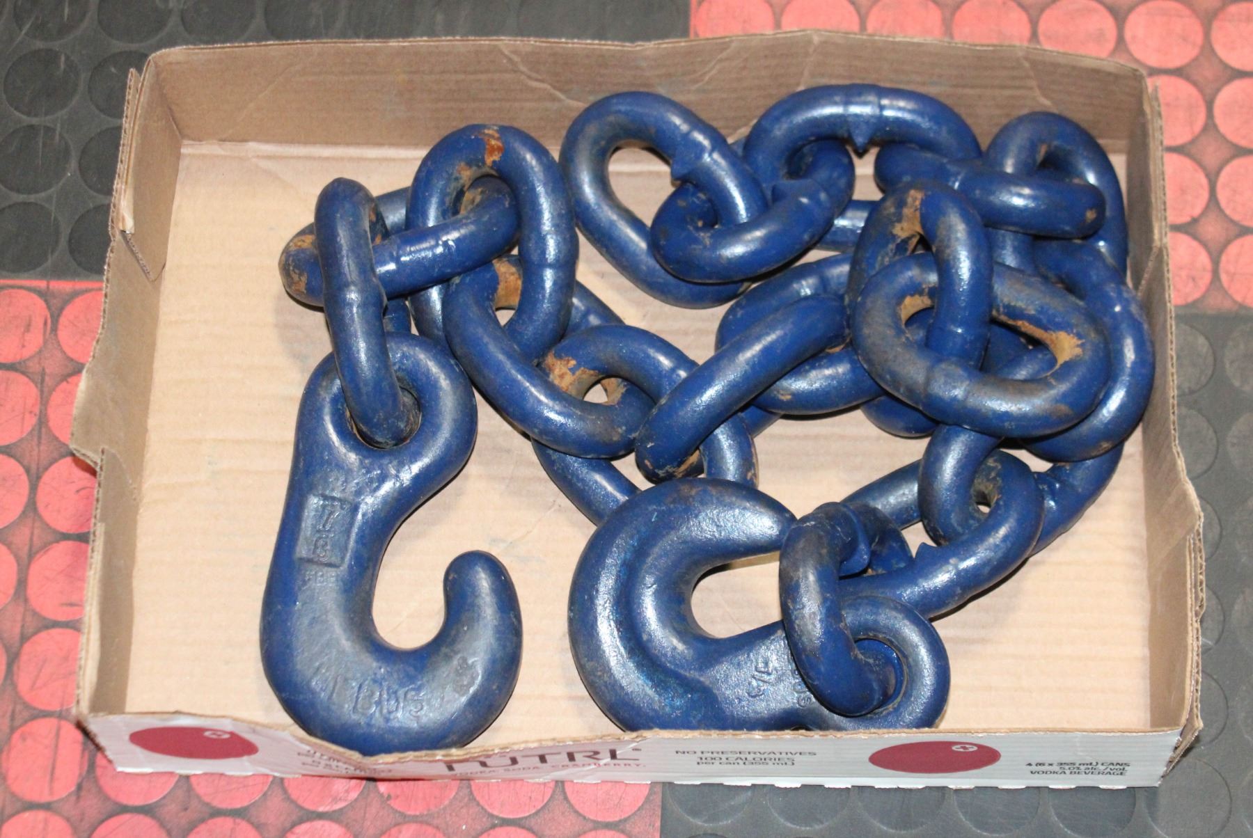 W/HOOKS 9 LARGE LINKS EACH TWO LEBUS HEAVY-DUTY RIGGING CHAINS, EACH WITH 9 LARGE LINKS (4–5" EACH) AND A 7/8" HOOK **ALL ITEMS MUST BE REMOVED BY 5PM SATURDAY, SEPTEMBER 20TH 2025. ALL REMAINING ITEMS WILL BE SUBJECT TO A $6.00 PER DAY STORAGE CHARGE. ANY ITEMS REMAINING AFTER MONDAY, OCTOBER 6TH 2025 WILL BE CONSIDERED FORFEITED. NO REFUNDS WILL BE ISSUED FOR FORFEITED ITEMS. TO SCHEDULE A PICK UP APPOINTMENT CLICK HERE