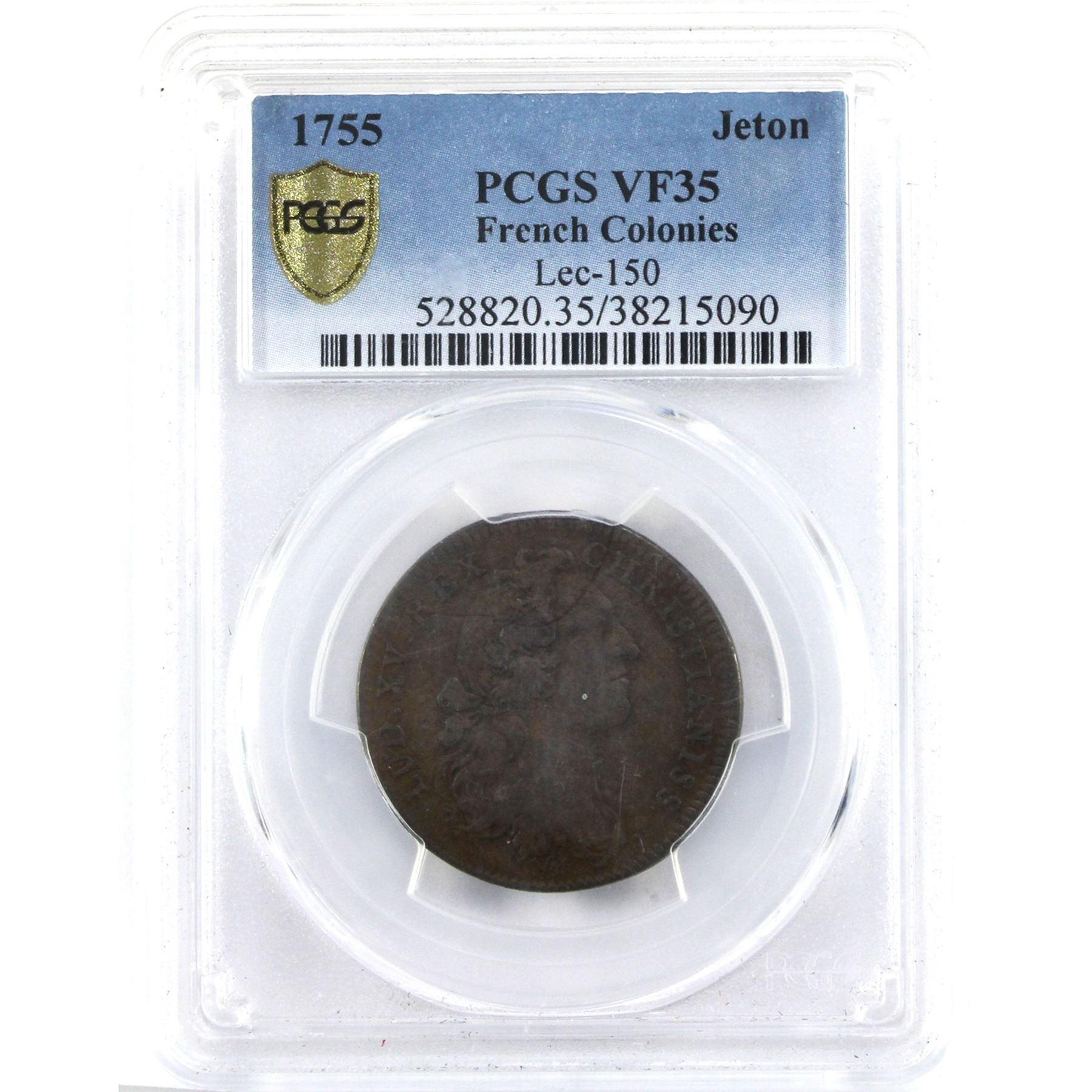 LEC-150, French Colonies 1755 Louis XV Jeton PCGS VF35