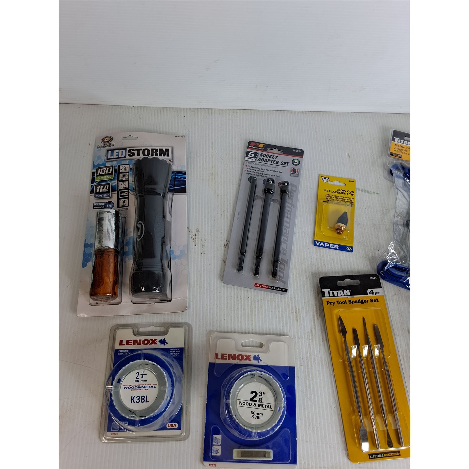 LED Flashlight, Socker Adapter Set, Blow Guu Replacement Tip, Metric T-Handle Hex Key Set, Misc