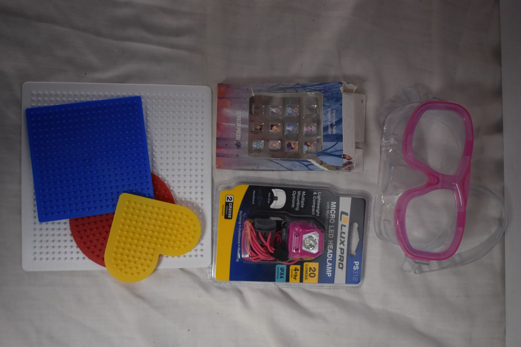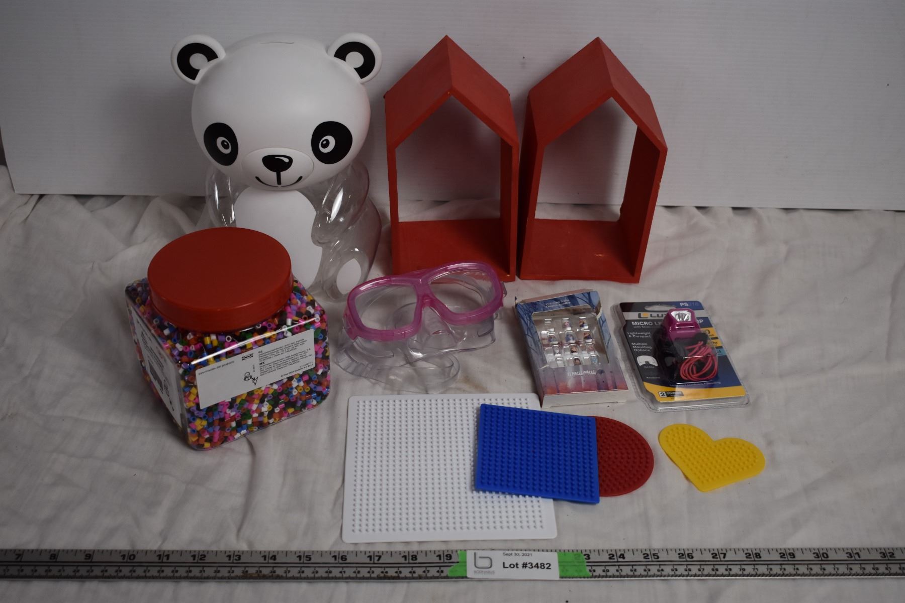 LED Headlamp, Bear Piggy Bank, and Misc Kids Items