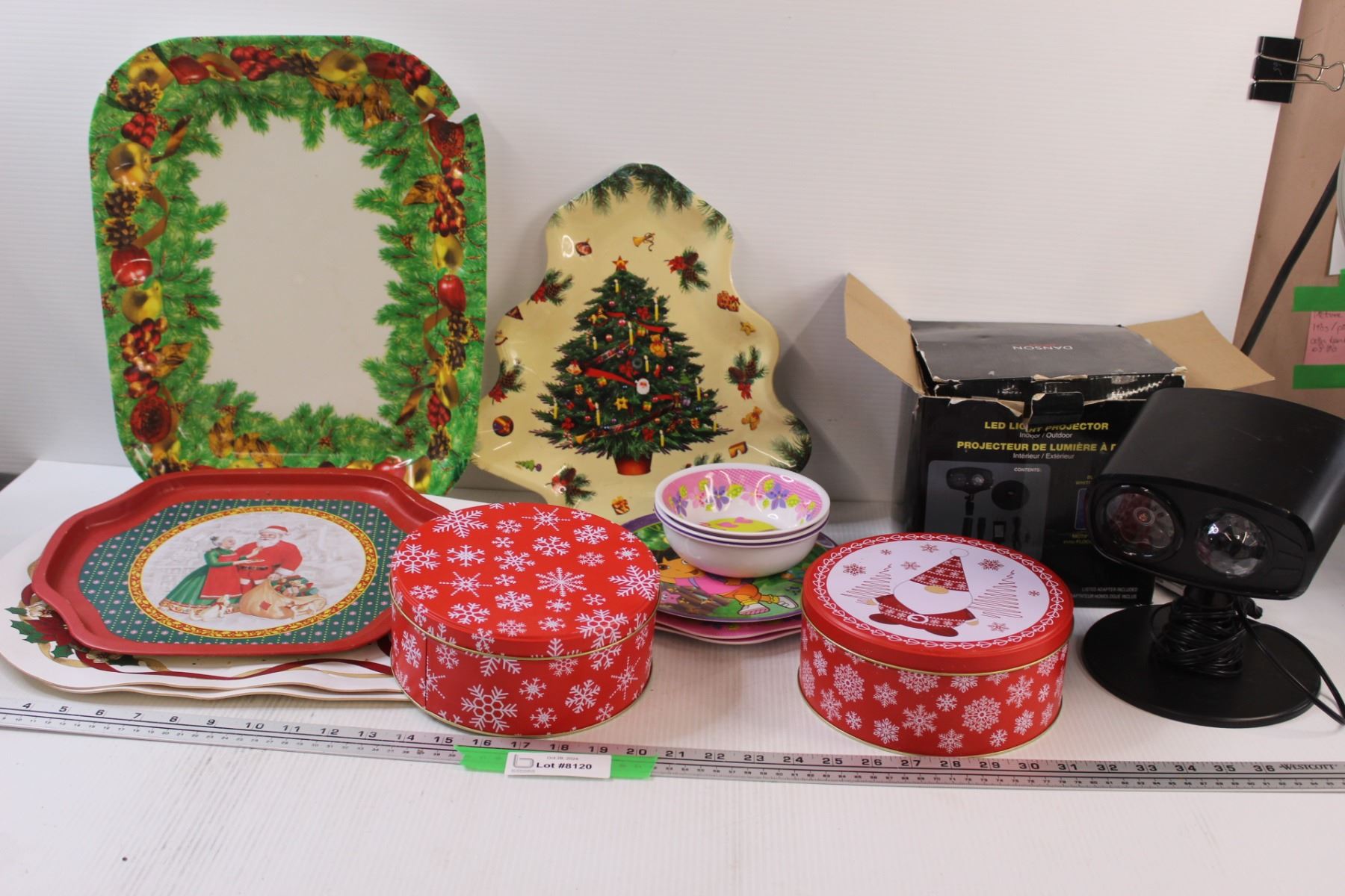 LED Light Projector - Currently Not Working, (2) Christmas Tins, Set of Christmas Trays, Dora The Ex