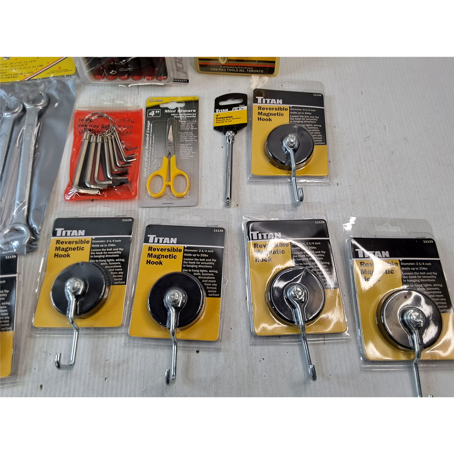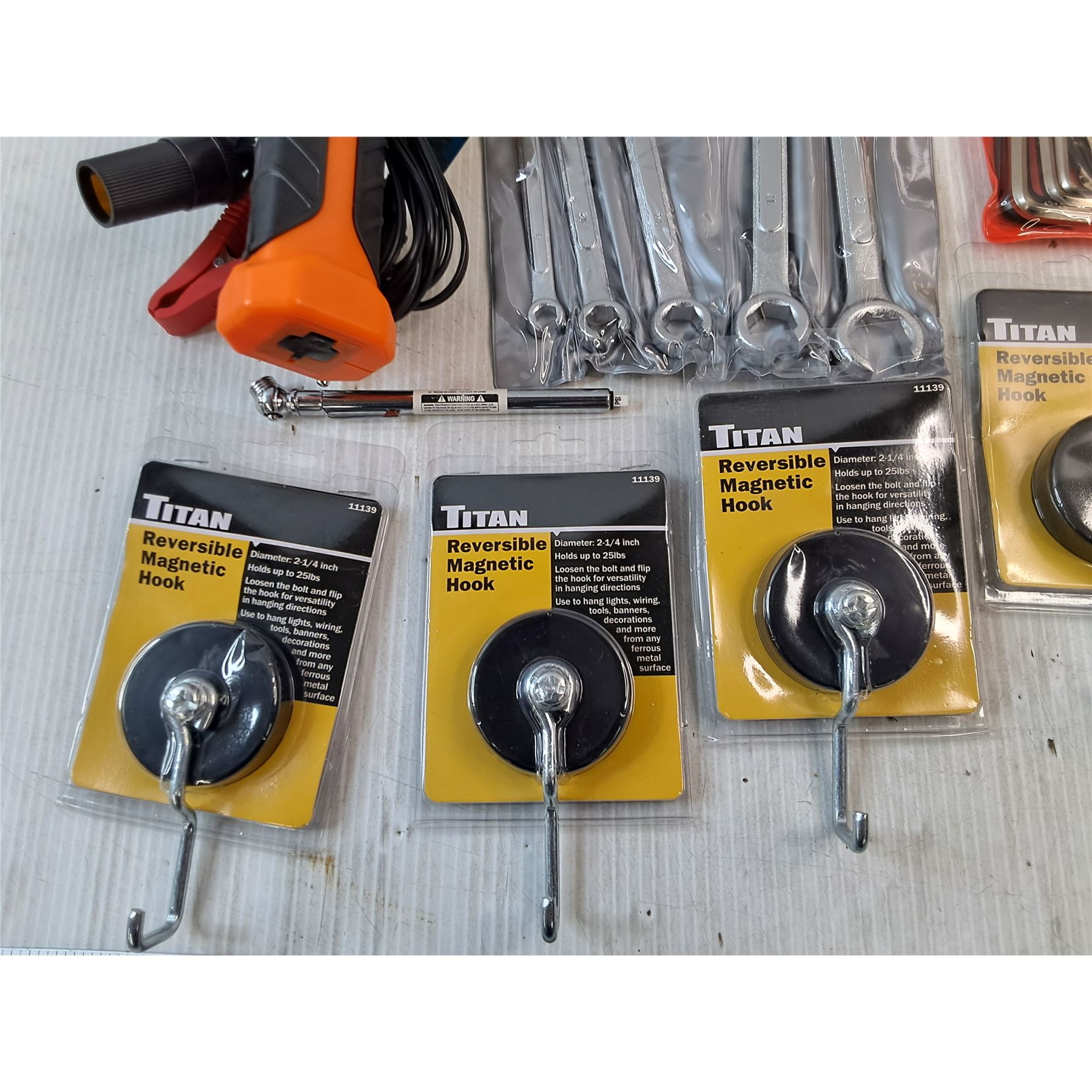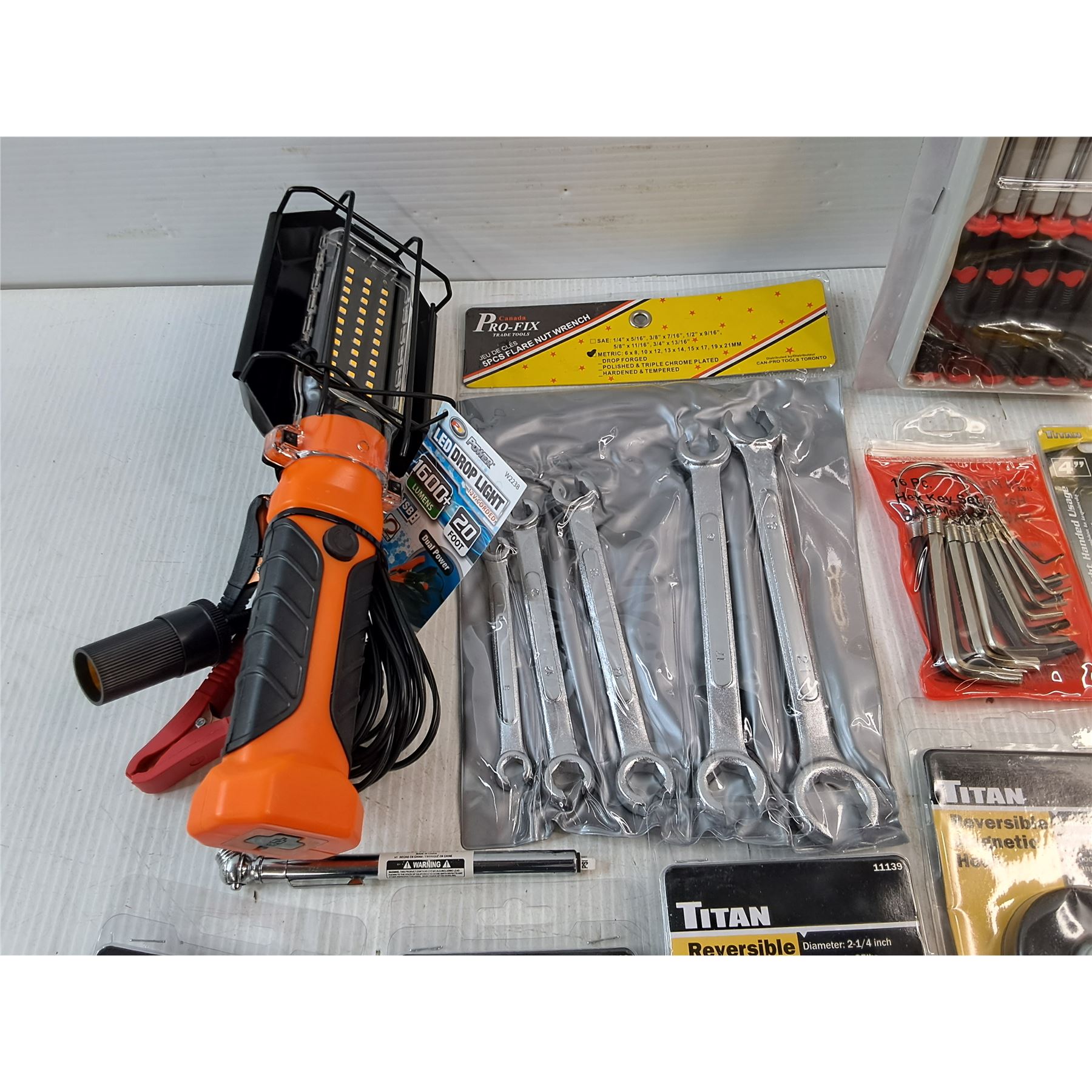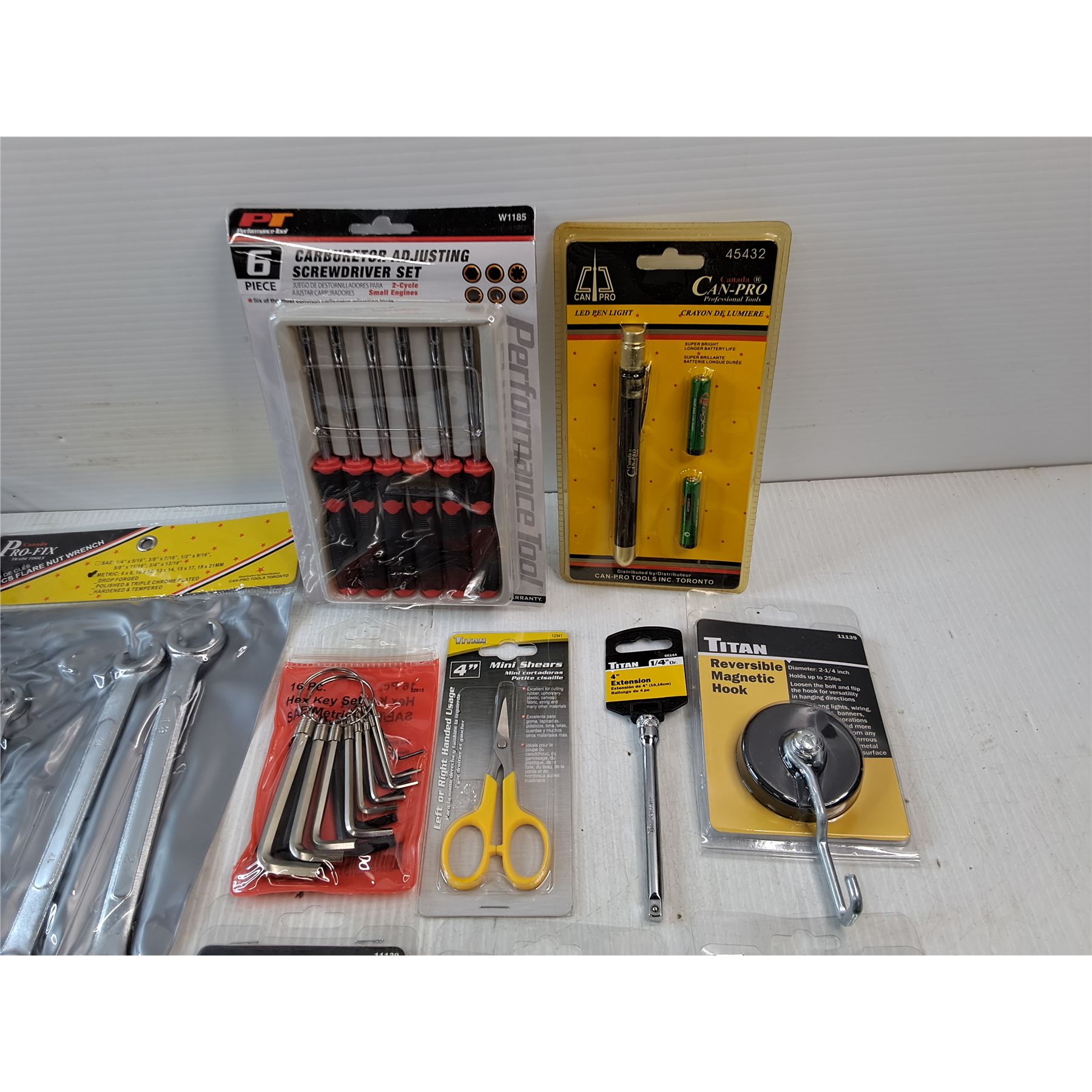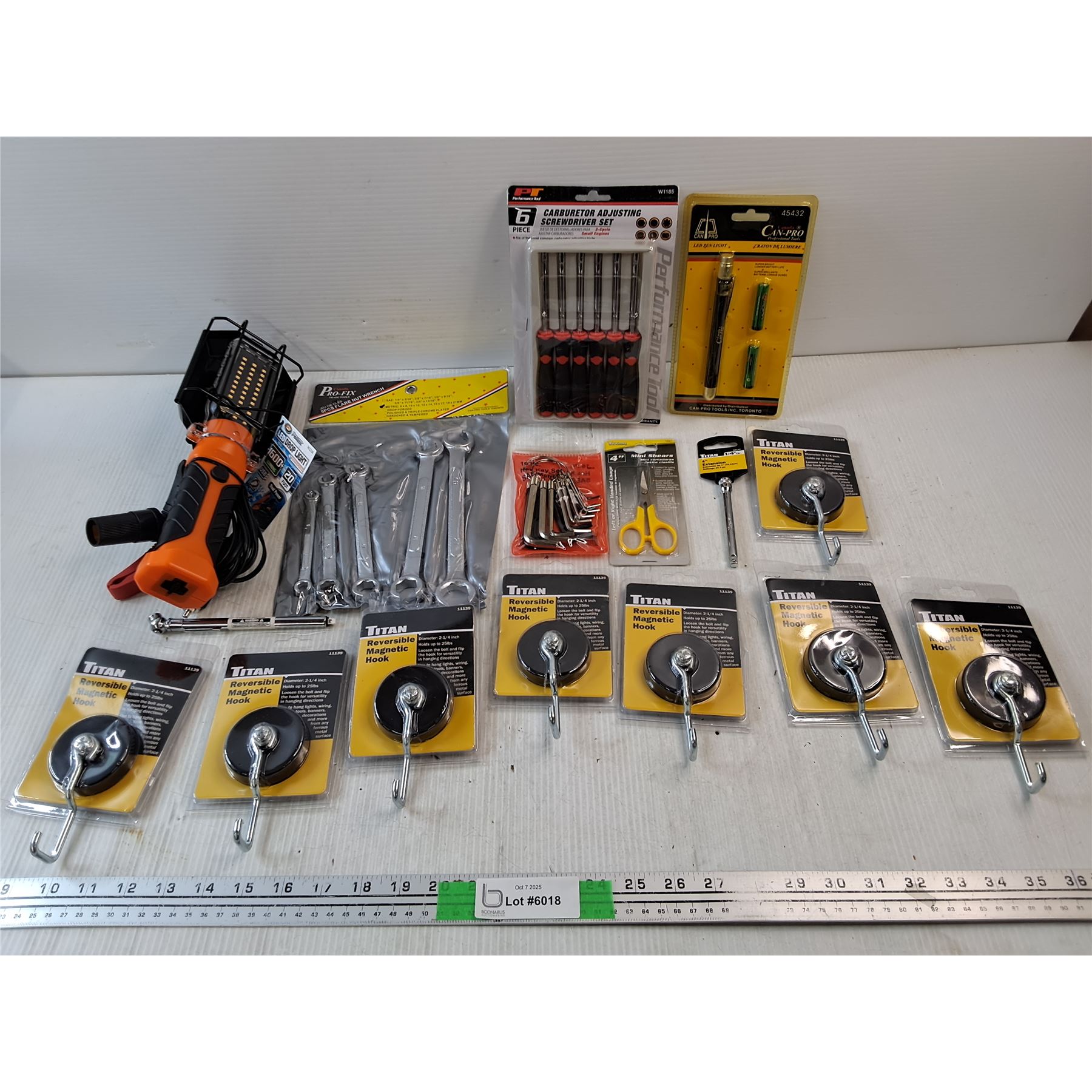 LED Trouble Light, Magnetic Hooks, Flare Nut Wrenches, Hex Key Set, 4" Extension, Misc