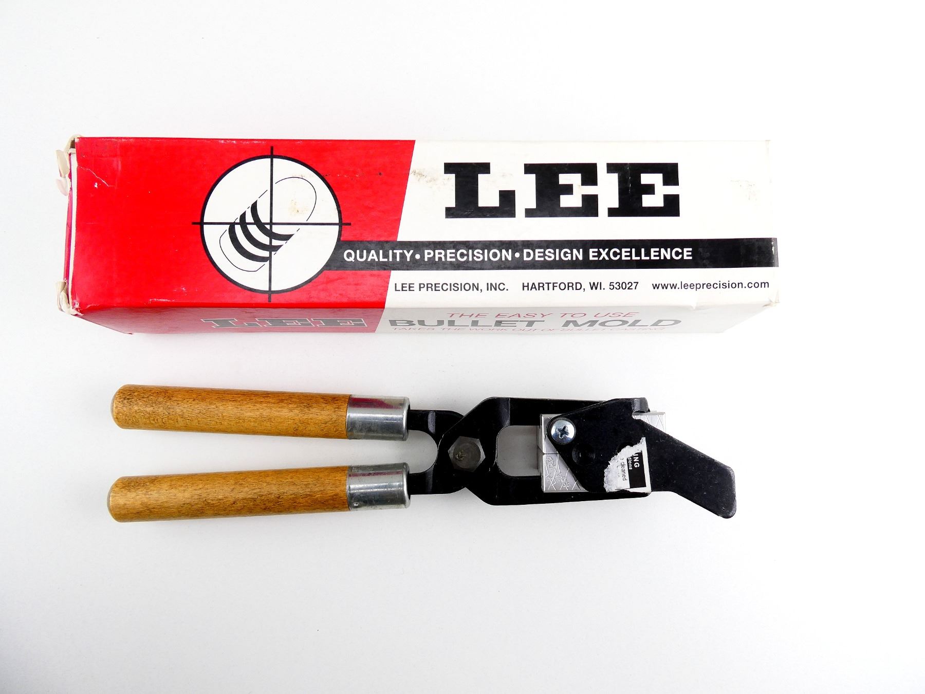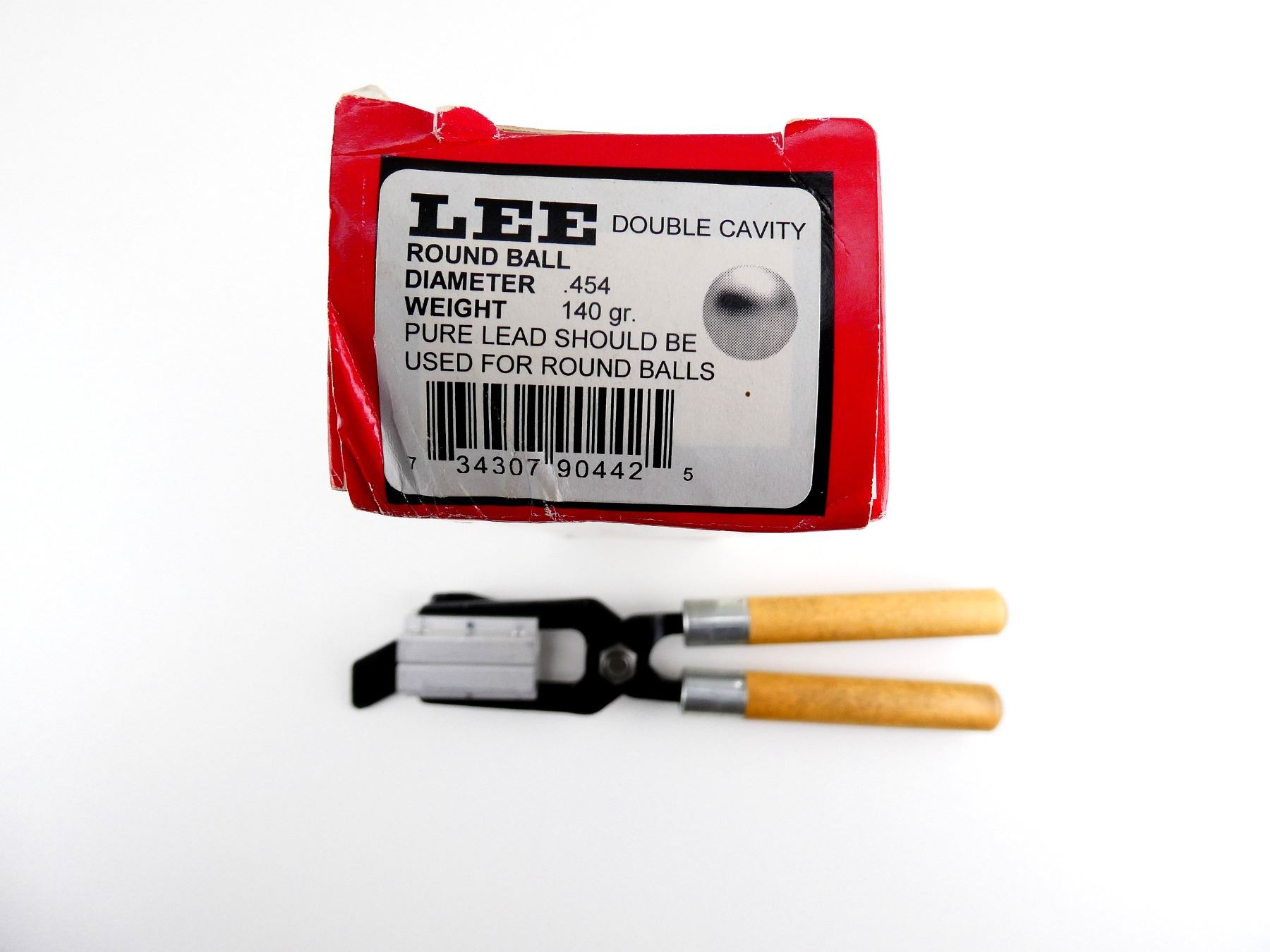 LOT INCLUDES; (1) .454" DOUBLE-CAVITY ROUND BALL MOLD WITH WOOD HANDLES ATTACHED, MOLD MARKED: "LEE, 454-RB", APPEARS NOS WITH ORIGINAL PACKAGING. SEE PHOTOS.