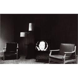 In the late 1950s and early 1960s, Lee Friedlander traveled often to support himself and his family photographing jazz and blues musicians for album covers. Finding himself often alone with only a television for companionship, he naturally set to work photographing the ubiquitous box. In 1963, HARPER'S BAZAAR published a half dozen of these pictures, including both images in this lot, accompanied by a text by Walker Evans of which the following is an excerpt: “What are these faces that moon out from the screens? Taken out of context as they are here, that baby might be selling skin rash, the careful, good-looking women might be categorically unselling marriage and the home and total daintiness. Here then from an expert hand, is a pictorial account of what tv-screen light does to rooms and to the things in them. The human denizens of the rooms are purposely left out. In this atmosphere of eclipse, the sense of citizen presence is actually increased” (Walker Evans, “The Little Screens,” HARPER'S BAZAAR, February 1963, pp. 127-128).